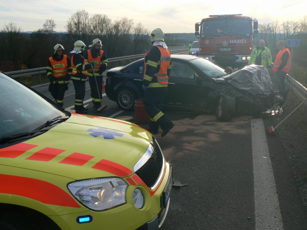 Jedno havarované vozidlo zůstalo stát na silnici, jeho řidič vyvázl bez zranění. Druhé vozidlo skončilo v příkopu. Hasiči se připojili k PČR, kteří poskytovali zraněnému první pomoc. Nasadili řidiči krční límec a následně asistovali ZZS při jeho transportu do sanitky.