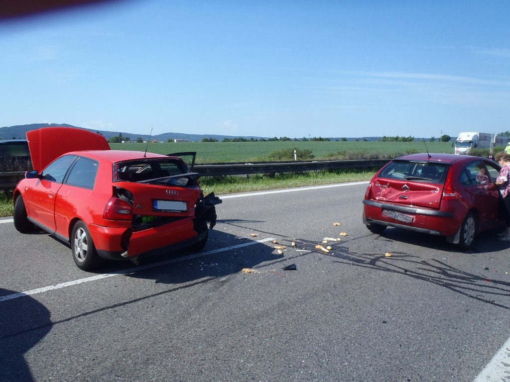 Vozidla se střetla na 59. kilometru za služebním exitem Svojkovice ve směru na Plzeň.