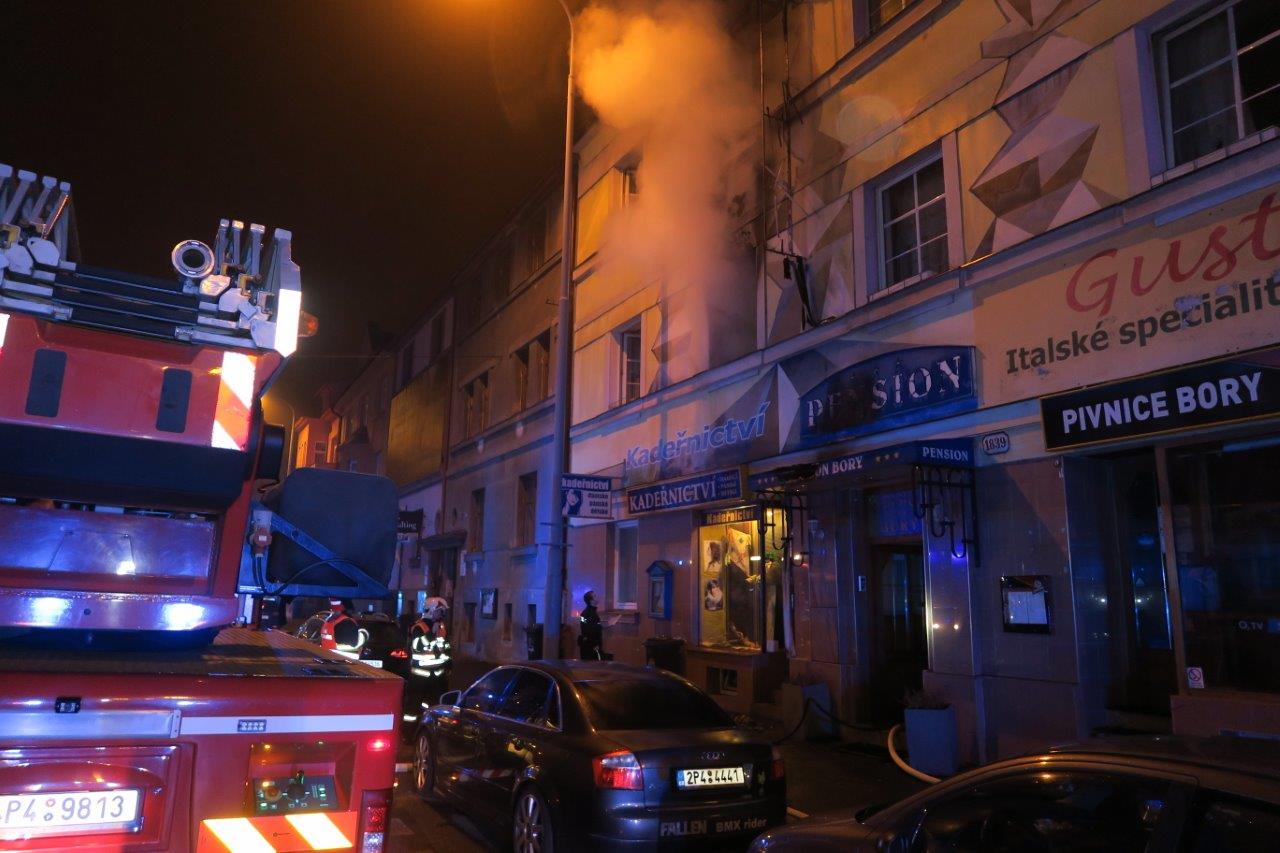 Zanedlouho poté byl požár nahlášen v Plzni na Klatovské třídě. V prvním patře ubytovacího zařízení došlo k požáru v jednom z pokojů. Požár se poté rozšířil i na další pokoj. 8 lidí se evakuovalo ještě před příjezdem hasičů, jednu osobu hasiči zachránili z římsy pomocí nastavovacích žebříků. Hasiči odvezli 8 lidí do náhradního ubytování. Provoz v místě události byl omezen. Jednotky po uhašení požáru rozebrali konstrukci stropu mezi 1. a 2. patrem a vyhledávali skrytá ohniska. Celý objekt po likvidaci požáru odvětrali. Škoda byla vyčíslena na 5mil. Kč. Uchráněné hodnoty na 20mil. Kč. Příčina je v šetření.
