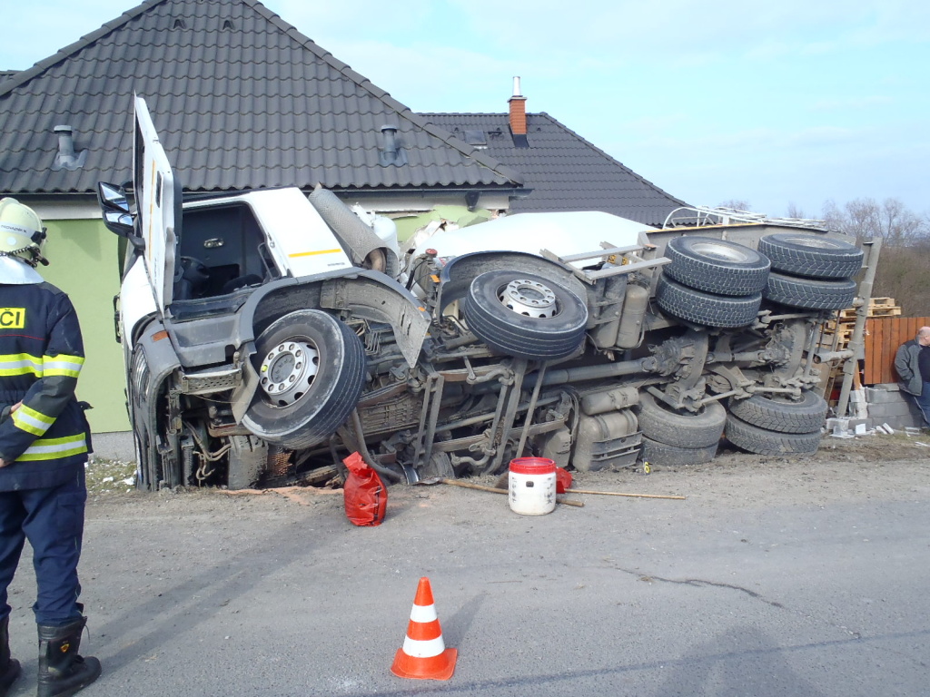 Hasiči PS Košutka, PS Slovany a SDH Kyšice vyjeli 24.3, 2018 k dopravní nehodě domíchávače na beton.