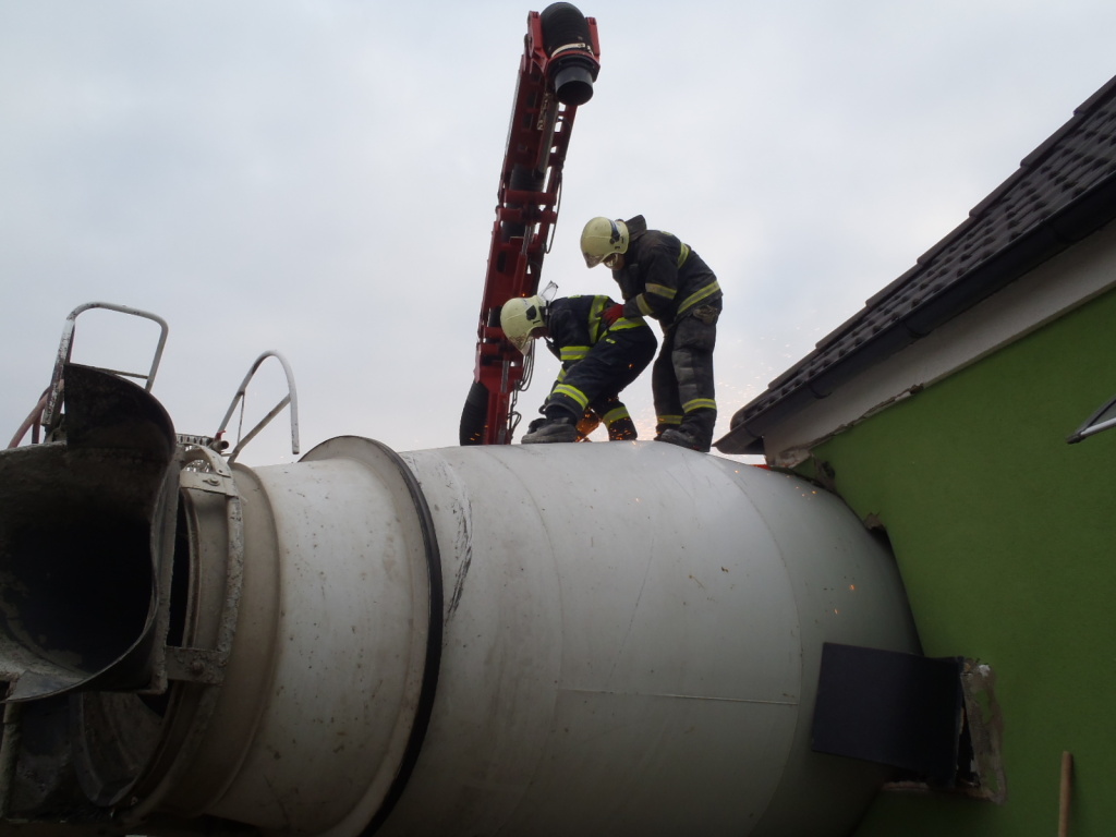 Míchačka na beton se převrátila na rodinný dům
