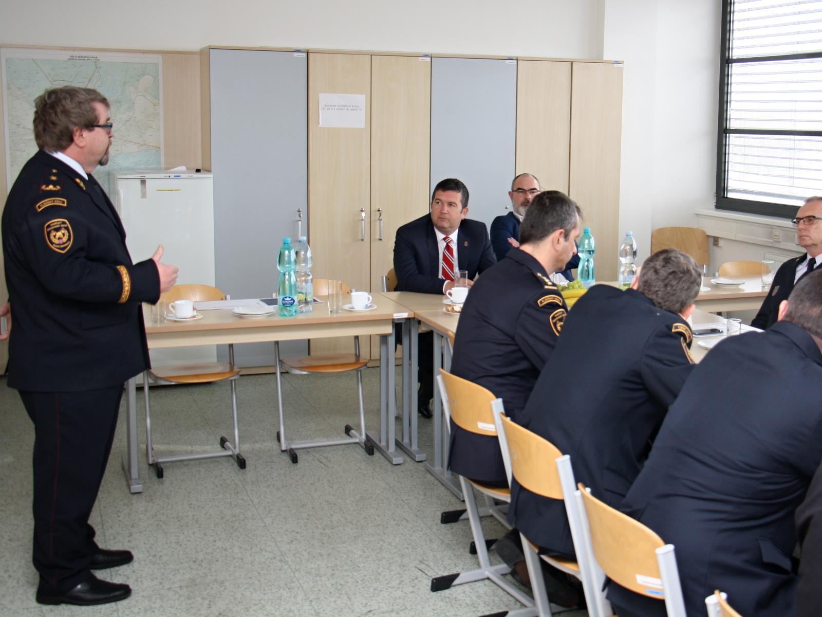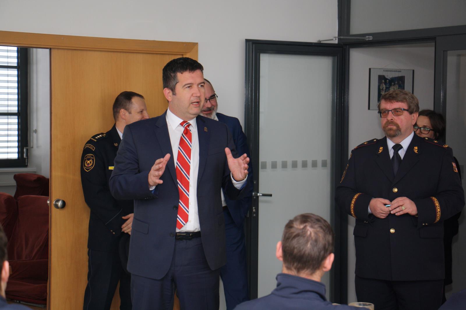 V doprovodu radního pro oblast bezpečnosti pana Martina Zrzaveckého se zde setkal s představiteli HZS Plzeňského kraje i s výjezdovými hasiči. Ředitel HZS Plzeňského kraje brig.gen. Ing František Pavlas ministra seznámil ve stručnosti s personální a finanční bilancí HZS Plzeňského kraje za několik uplynulých let.