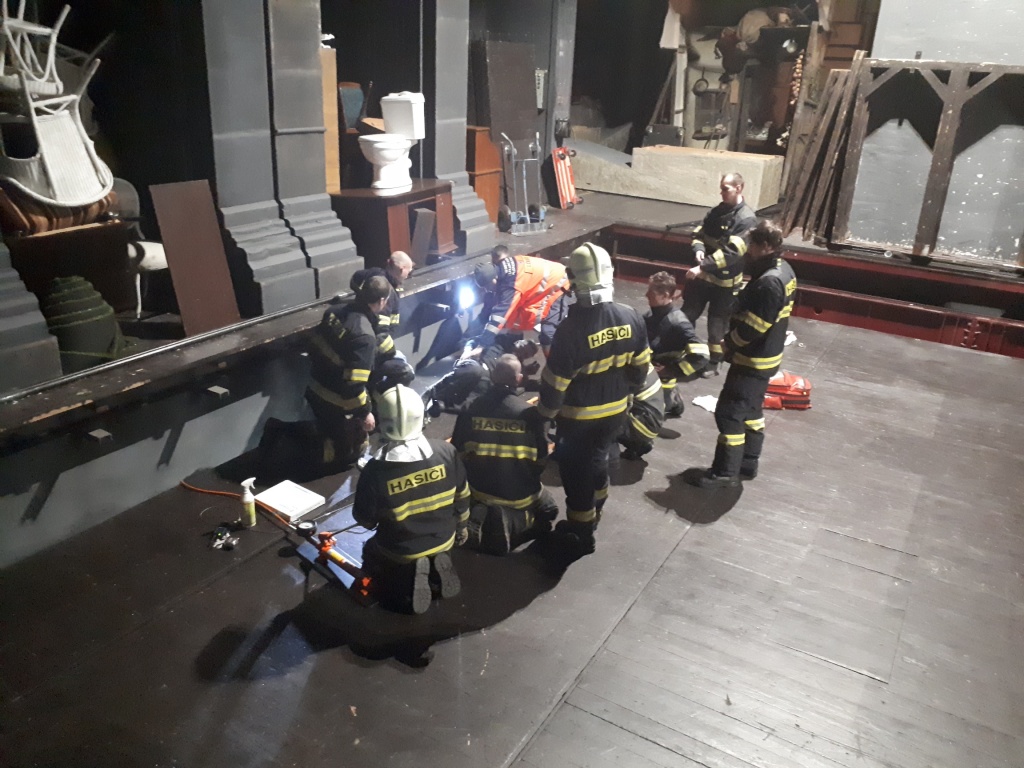 Jednotky PS Střed a PS Košutka vyjely 4.března 2018 do divadla J.K. Tyla k vyproštění muže, jehož přimáčkla část jevištní scény...