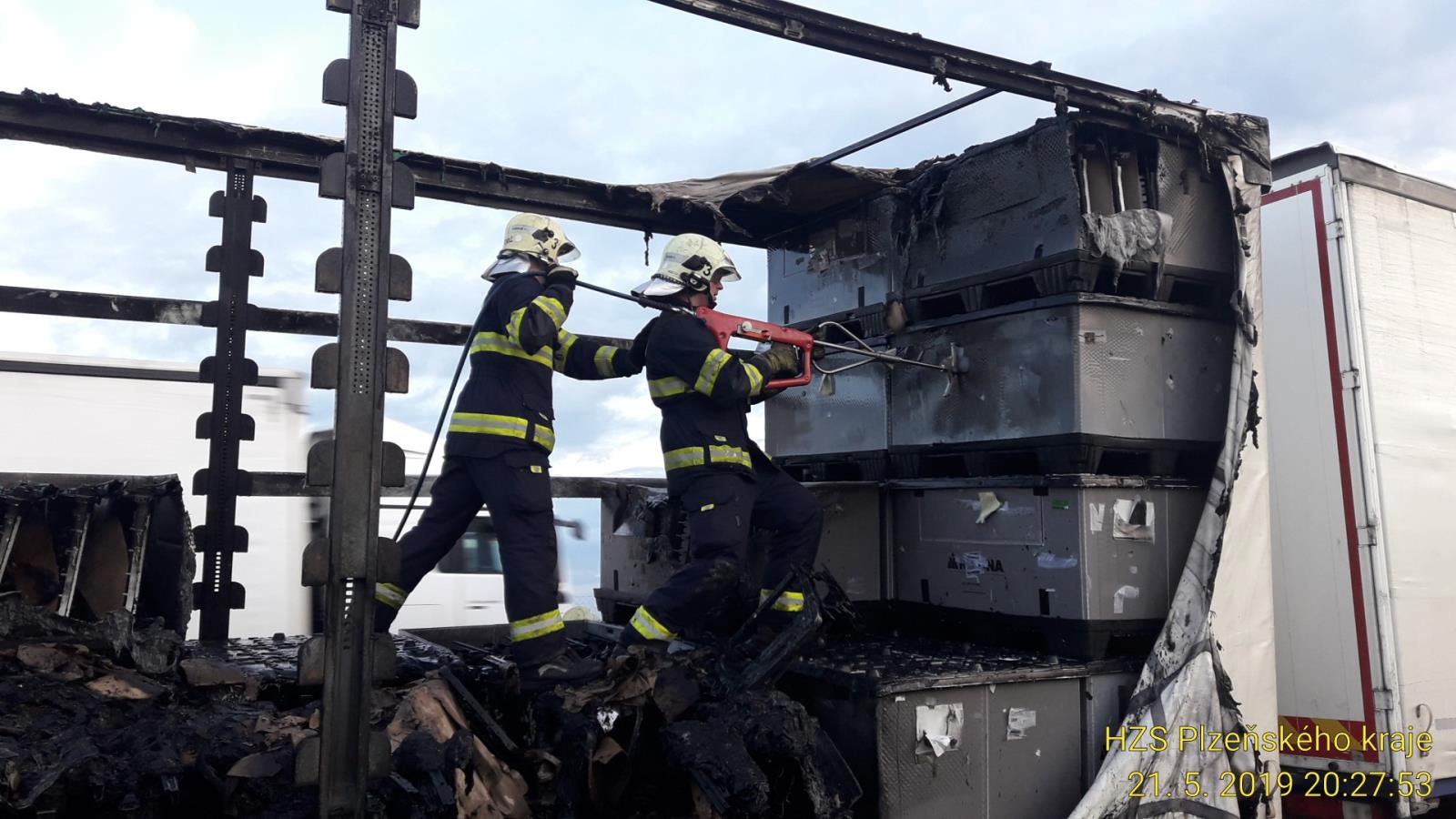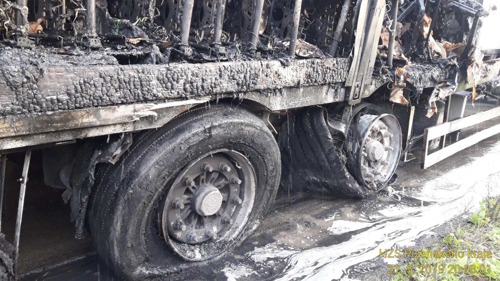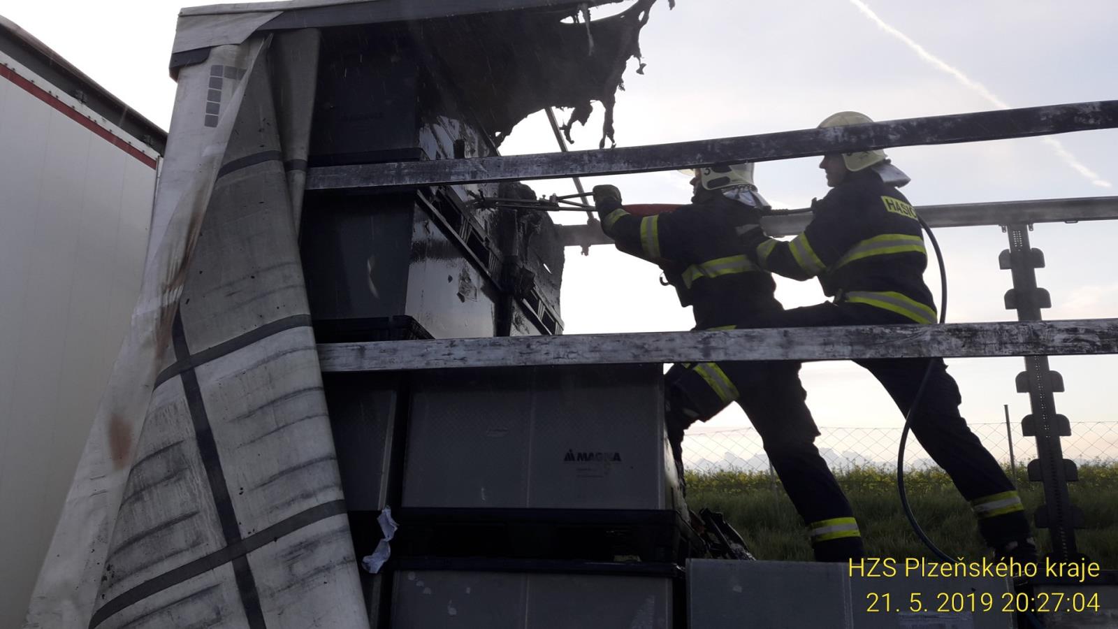 21.5.2019 po devatenácté hodině vyjeli hasiči ze stanic Nýřany a Střed k požáru přívěsu nákladního automobilu.