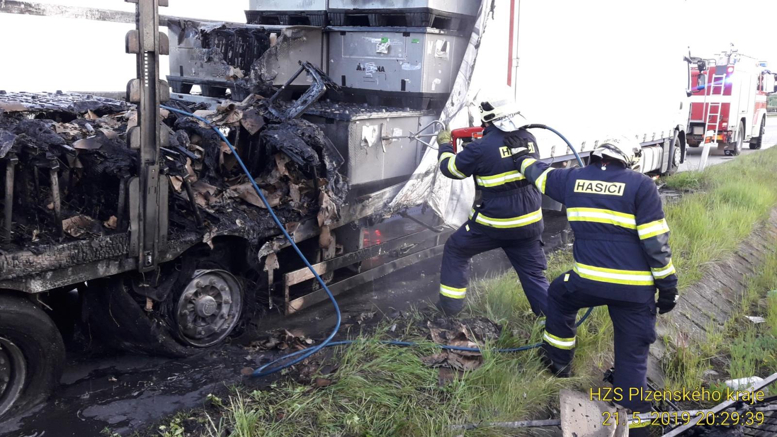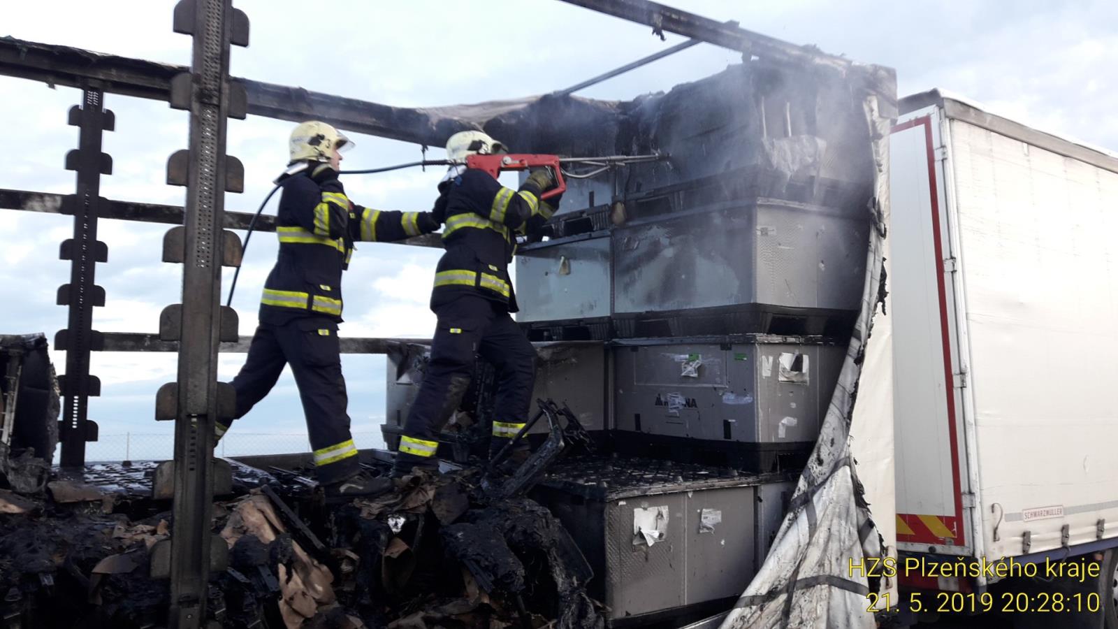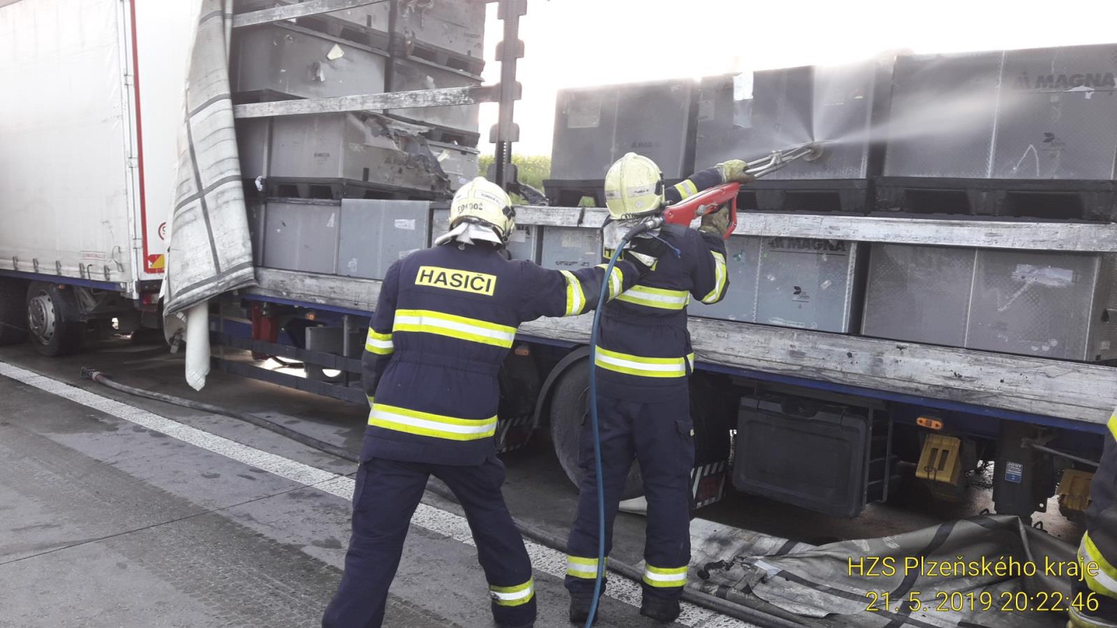 21.5.2019 po devatenácté hodině vyjeli hasiči ze stanic Nýřany a Střed k požáru přívěsu nákladního automobilu.
