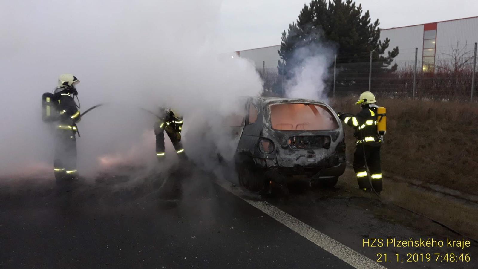 Na Nové Hospodě na Tachovsku došlo v pondělí 21.1.2019 kolem 7:45 k požáru osobního vozidla.