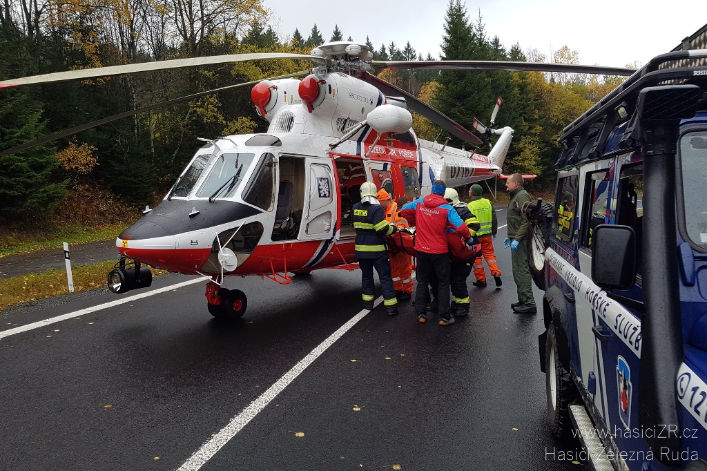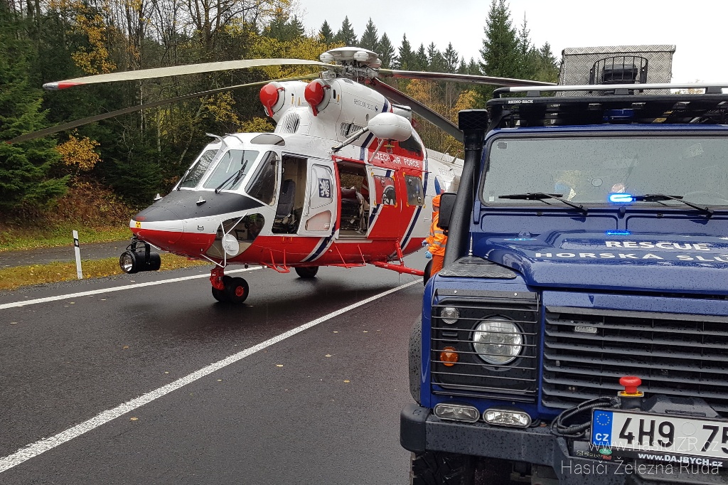 Hasiči okamžitě uzavřeli celou silnici a připravili na odpočívadle vzdáleném od nehody asi 400 metrů přistávací plochu pro vrtulník.