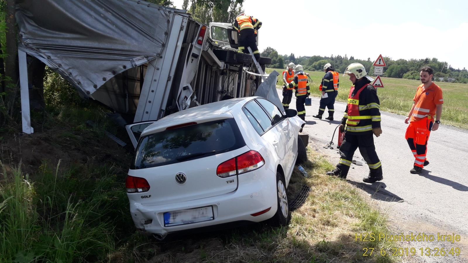 U dopravní nehody osobního a nákladního vozidla zasahovali hasiči ze stanice Slovany a jednotka SDH Blovice na křižovatce Hořehledy ...