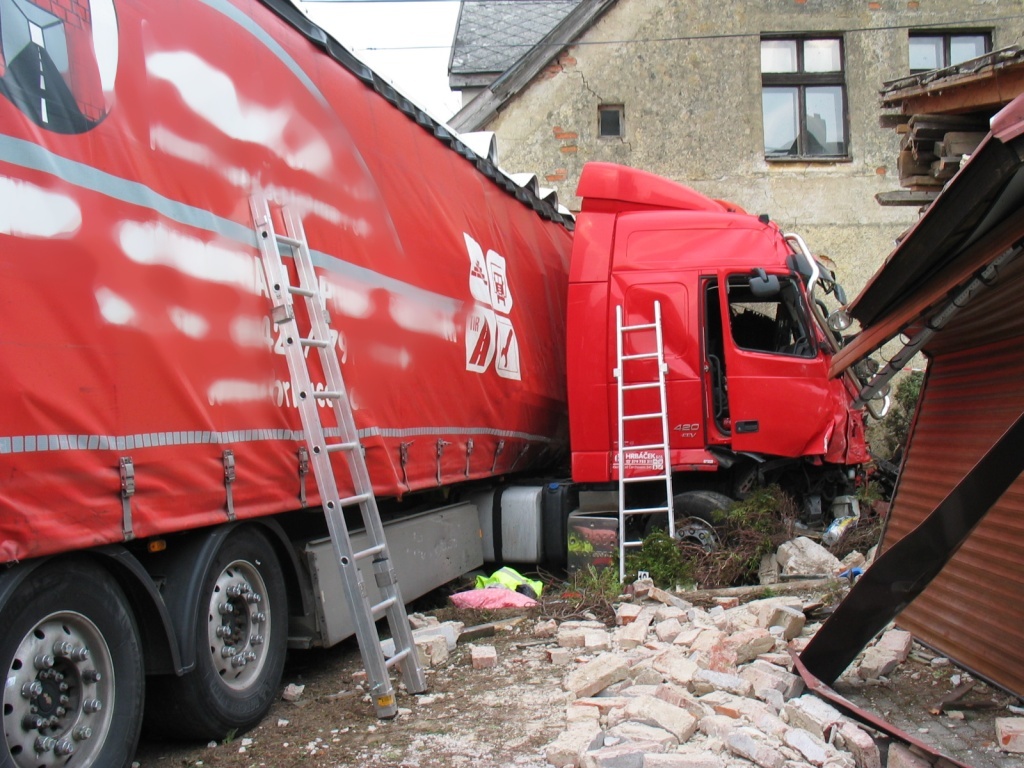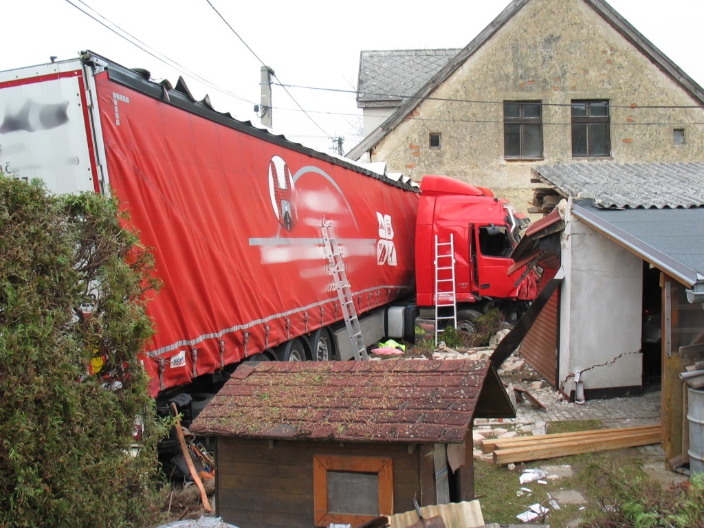 K dopravní nehodě kamionu došlo 26.3. 2018, před 15hod. v Klenčí pod Čerchovem. Kamion naboural dvě stojící vozidla, dopravní značku, poničil garáž a skončil ve zdi rodinného domu. Řidiče museli hasiči vyprostit.