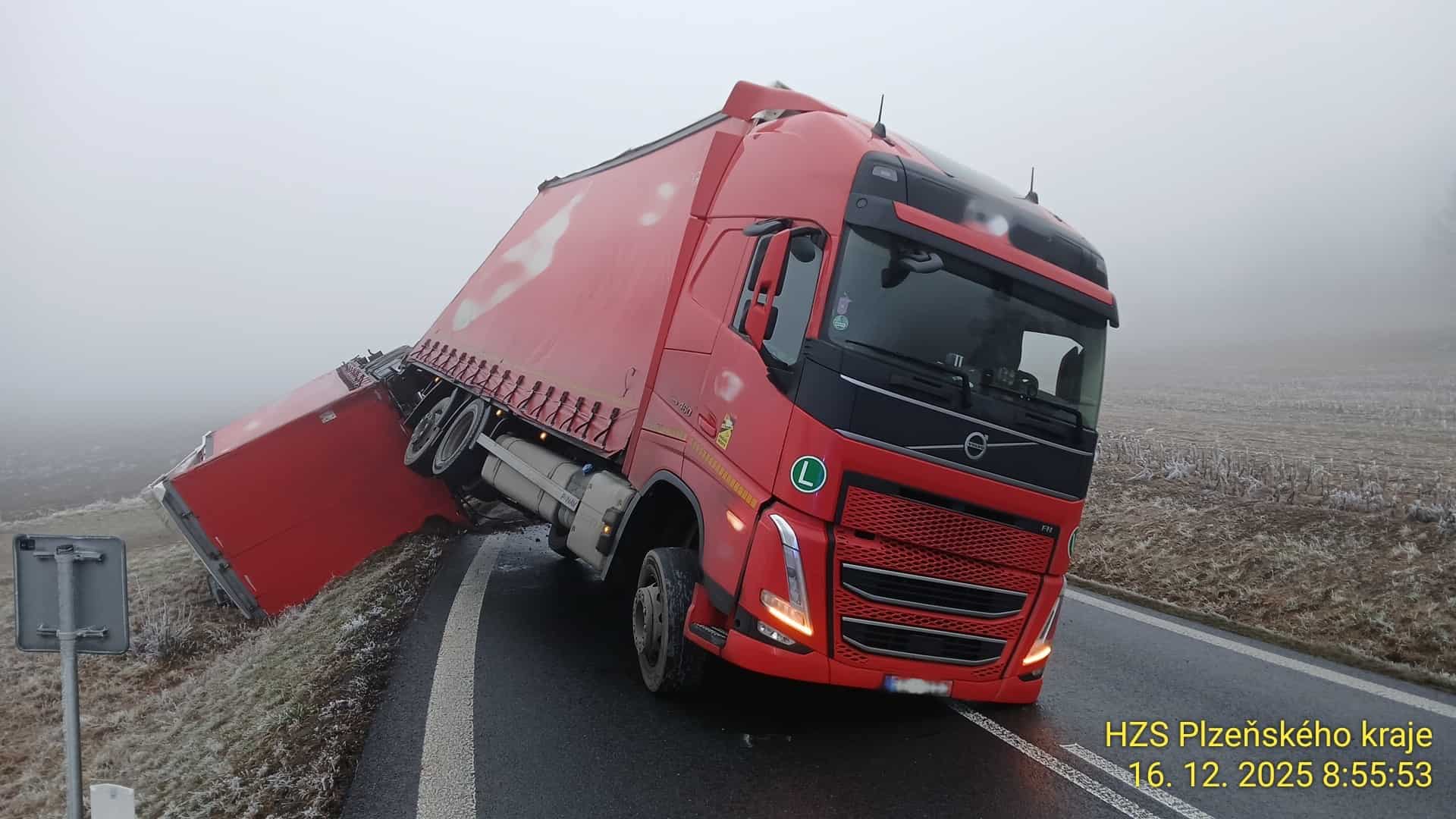 Dopravní nehoda nákladního vozidla s přívěsem uzavřela silnici I třídy a na několik hodin zcela zastavila provoz. Policie zavedla objízdné trasy. Událost znovu upozorňuje na rizika zimního provozu.