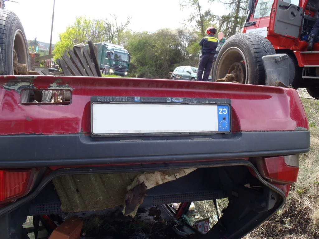 Druhé auto skončilo na pozemku RD na střeše, při nehodě byl poškozen dřevěný plot s betonovou podezdívkou. Hasiči spolupracovali se ZZS při ošetření zraěnné ženy a jejím transportu do sanitky. O vyproštění auta se postarala odtahová služba.