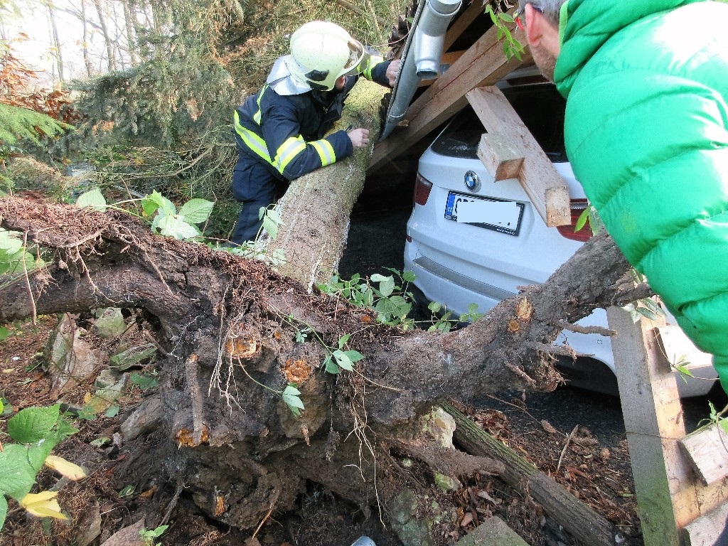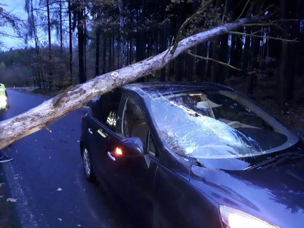Do vyvrácených stromů narazilo osobní auto u obce Mchov na Tachovsku a vlak u Drahotína na Domažlicku. O velkém štěstí může hovořit řidič osobního auta, kterému při jízdě u Červeného Hrádku padl strom přímo na střechu. I na dalších místech kraje padly stromy na vozidlo. Na Domažlicku dvakrát v Horšovském Týně, Krchlebech. Přímo v Klatovech na třech místech, na Klatovsku v Kašperských Horách poškodil strom hned 5 osobních aut, dále v Malé Vísce a ve Světlé. V Plzni padl strom na osobní auta v Hradišti, na Lochotíně, v ulici Suvorovova, ve Svrňanech a na Zábělské. NA Rokycansku vítr shodil strom na OA ve Zbirohu a garážový přístřešek v Kamenném Újezdu. Na Tachovsku strom poškodil auta u obcí Branka, Hošťka a Lažany.