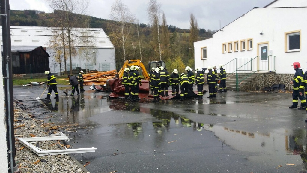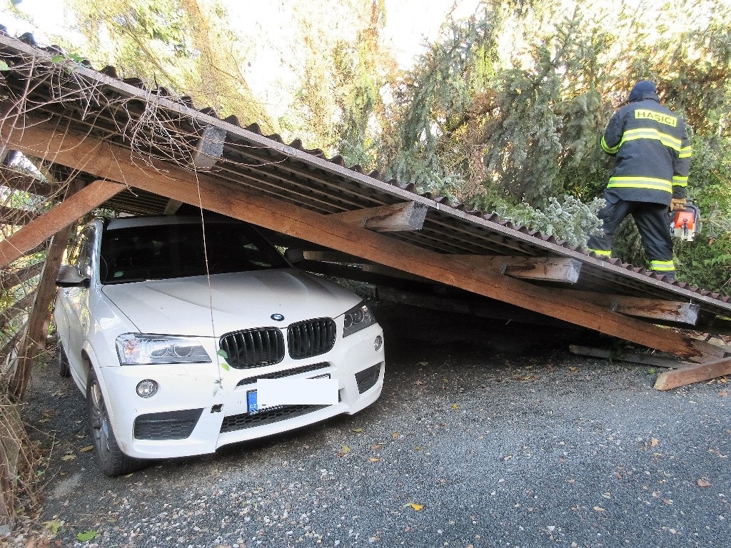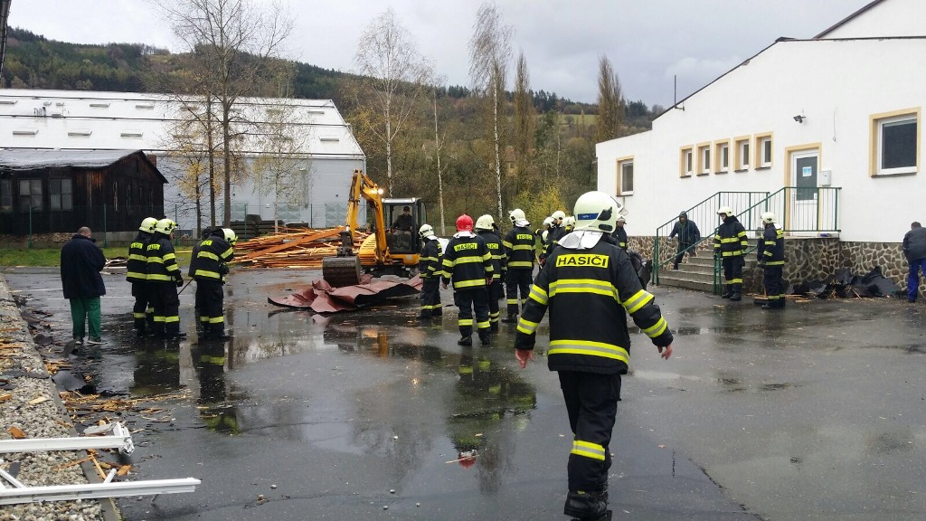 Vítr na mnoha místech po kraji poškodil střechy budov. Hasiči zajišťovali uvolněné plechy například v Plzni na Borech, v Čechurově, na Doubravce, na náměstí Milady Horákové, Rokycanské i v samotném centru,