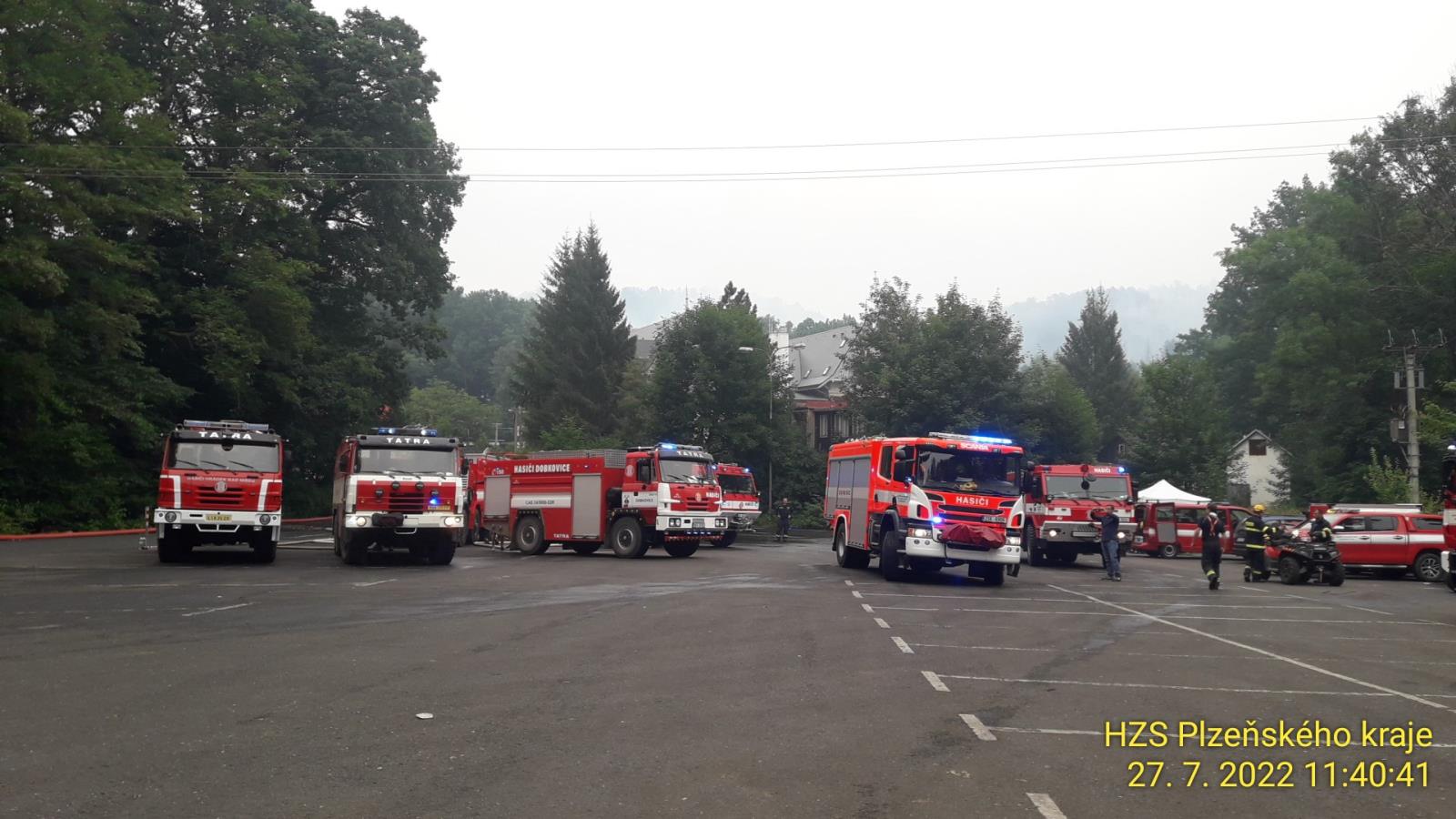 Dne 26.7.2022 byl sestaven odřad, který odjížděl ve 3 hodiny ráno a na místě byli již v 5:48. Do odřadu byla zařazena technika pro tvoření dálkové dopravy vody za pomoci velkokapacitního čerpadla SOMATI, ke kterému byly dva hadicové kontejnery s celkovou délkou hadic 2km. Další vozidlo v odřadu byl týlový kontejner pro vytvoření zázemí zasahujících hasičů a velitelské vozidlo. S technikou odjelo 6 příslušníků ze stanice Plzeň - Slovany, požární stanice Plasy a požární stanice Plzeň – Košutka.