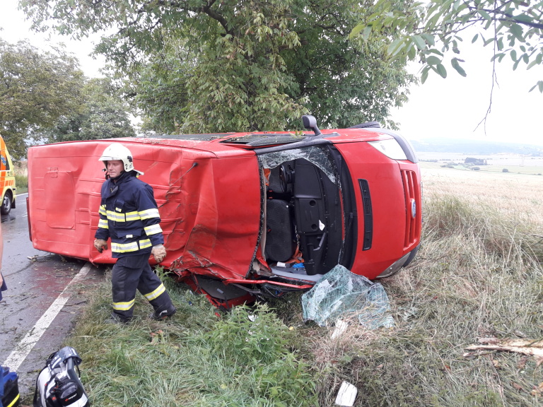 nehoda23.pngKe třetí nehodě došlo u odbočky na Nezbavětice na silnici č. 19. Zde se do příkopu převrátila dodávka. Zraněnou osobu si převzala ZZS.