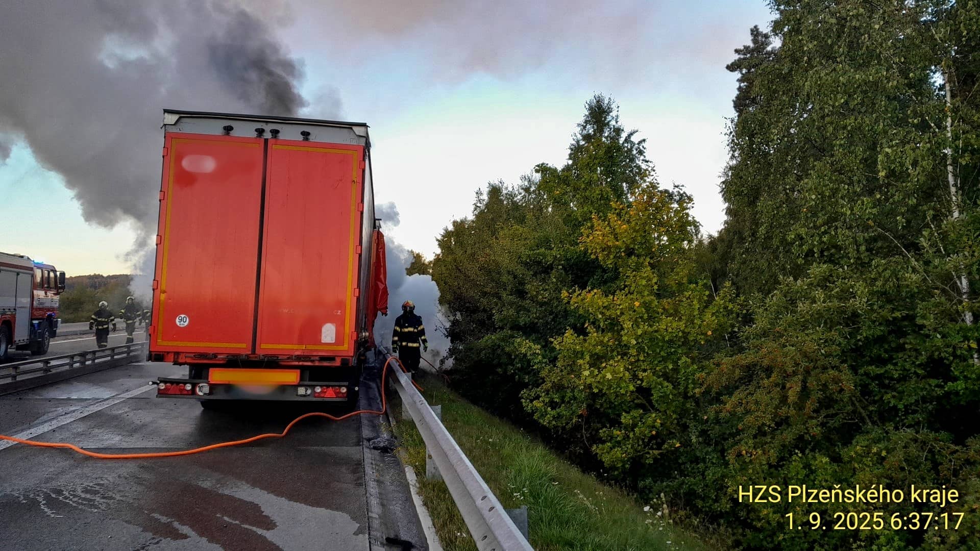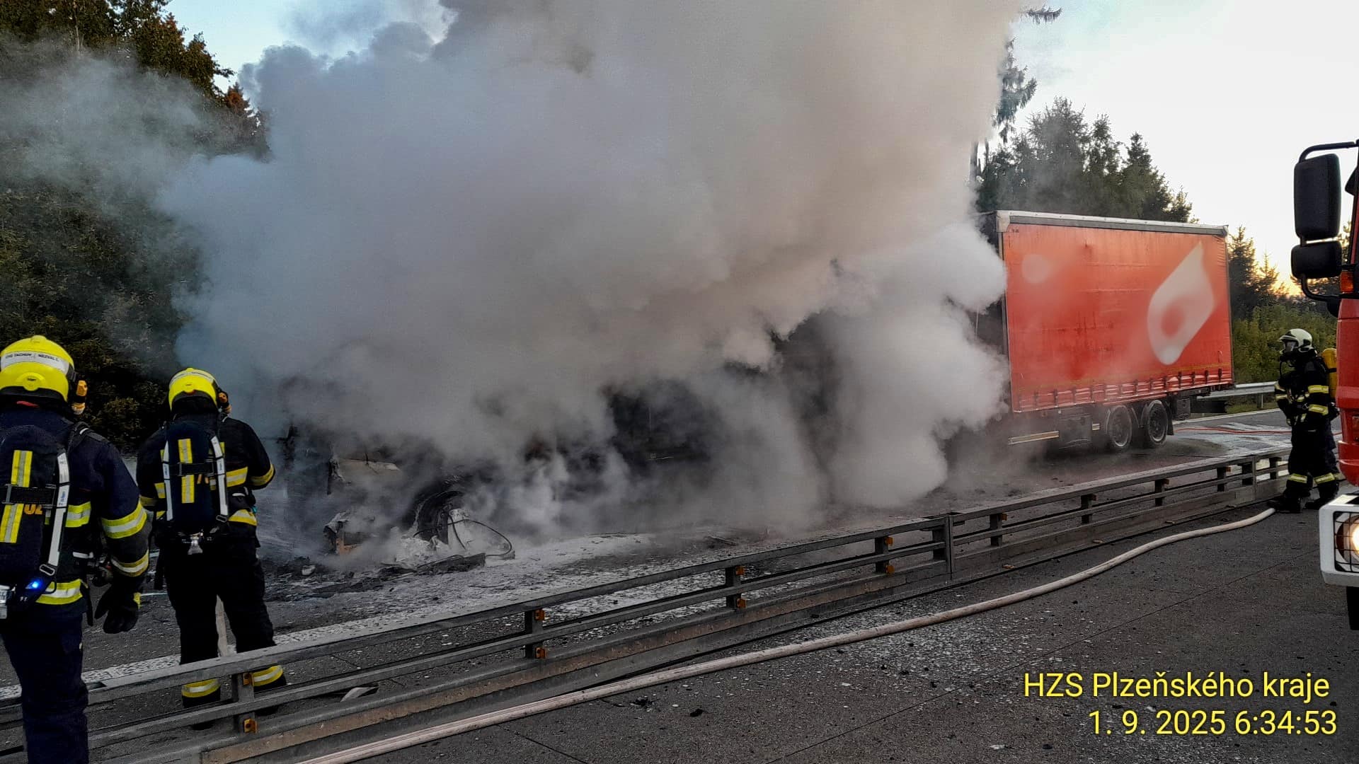 Dne 1. září 2025 v 5:58 vyjely jednotky hasičů k požáru kamionu na 135. kilometru dálnice D5. Po příjezdu zjistily, že celý automobil je zachvácen plameny. Proti ohni nasadily tři útočné proudy vody a pěnu, která účinně potlačuje šíření plamenů u vozidel s nákladem.