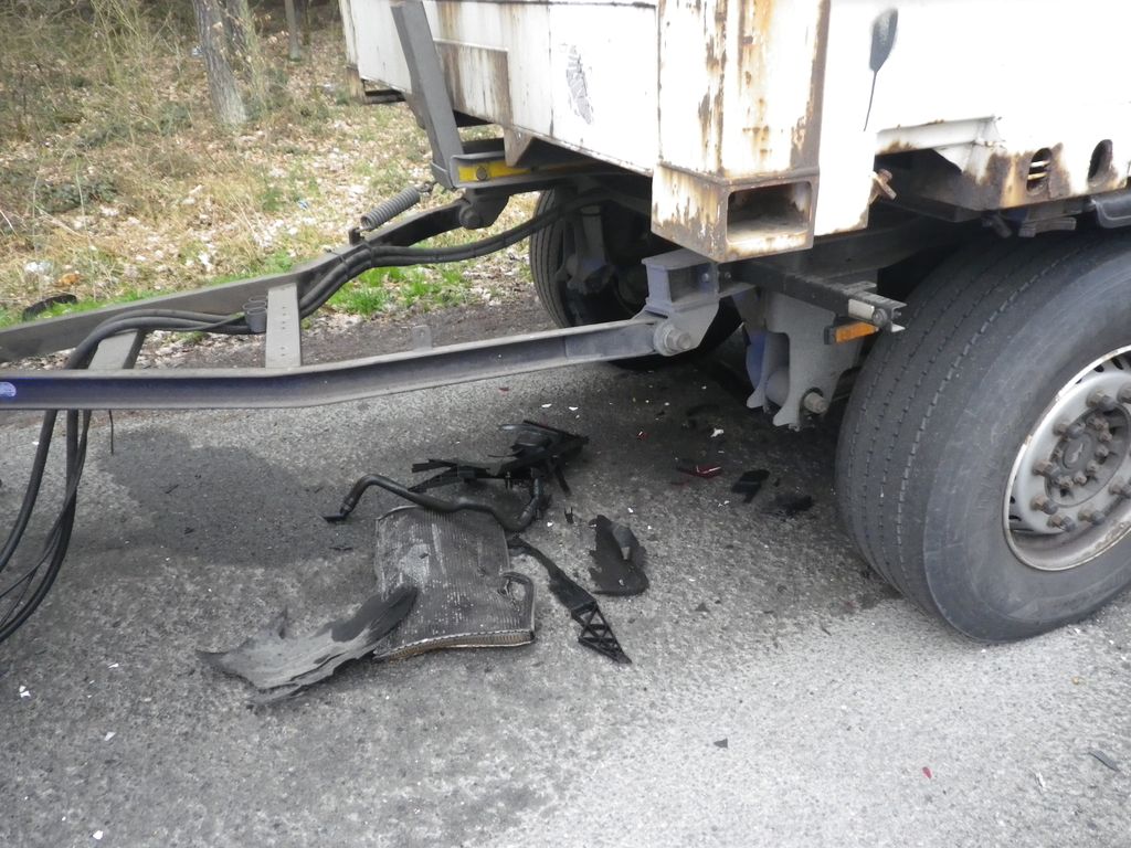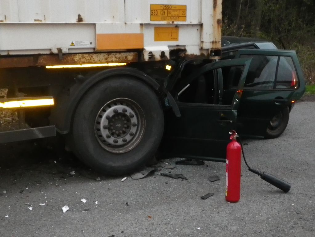 Osobní auto narazilo zezadu do návěsu zaparkovaného kamionu. Řidič vážným zraněním na místě podlehl.
