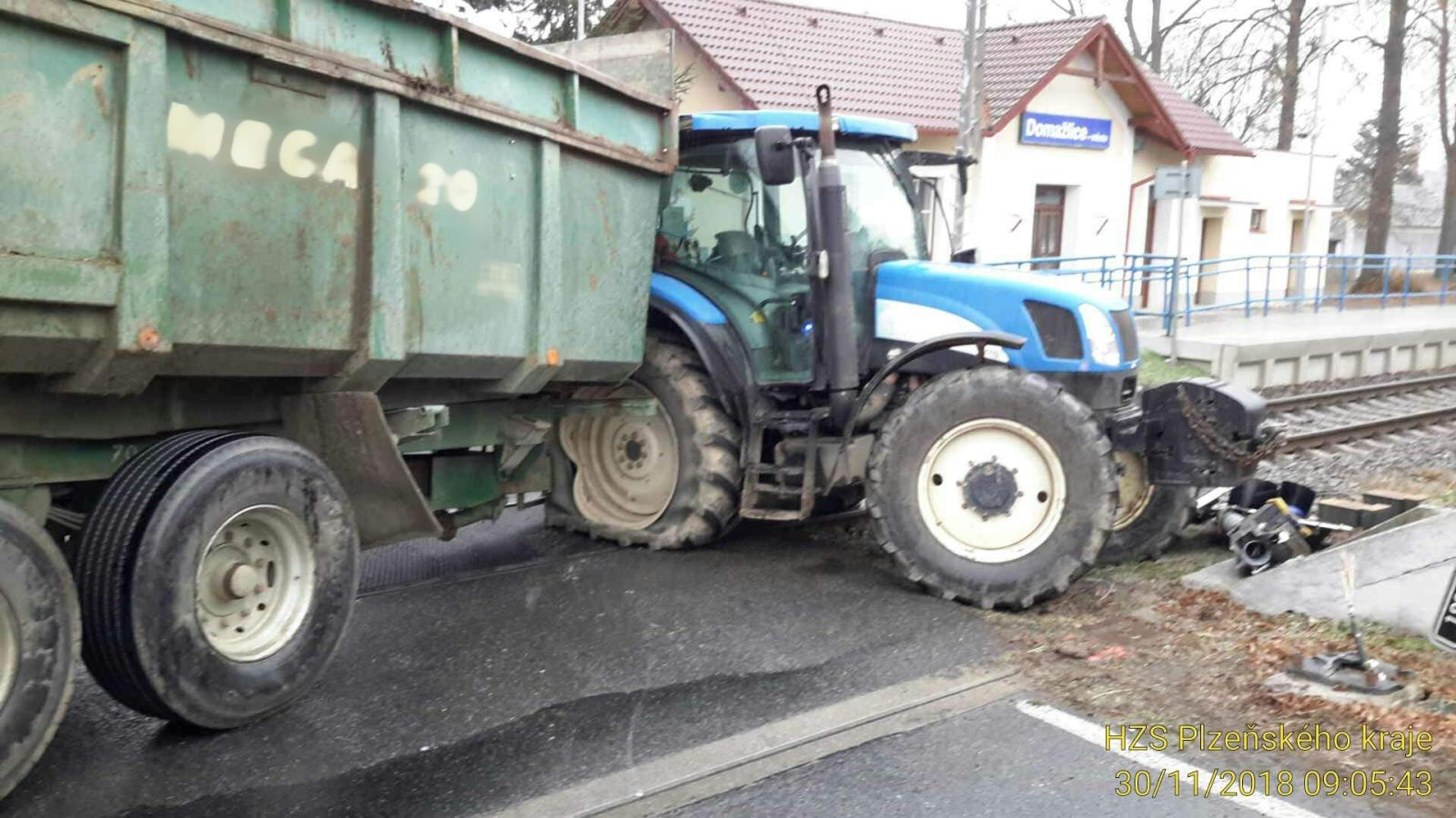 Domažlicích uvízl na železničním přejezdu v Jiráskově ulici traktor s návěsem. Neovladatelná souprava zničila jedno ze zabezpečovacích zařízení a zablokovala trať. Traktor se podařilo vyprostit pomocí těžké techniky jedné z místních firem. Provoz na trati byl poté obnoven. Ke zranění nedošlo.