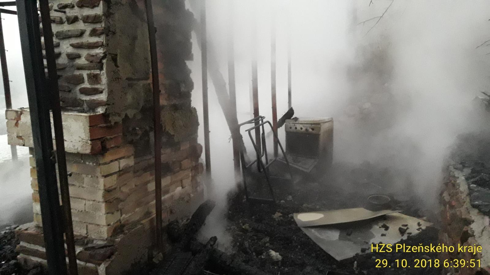 Cca v půl páté ráno, 29.10.2018,  vyjeli hasiči ze stanice Klatovy a JSDH Chudenín, Nýrsko a Všeruby(DO) k požáru chaty u Chudenína.