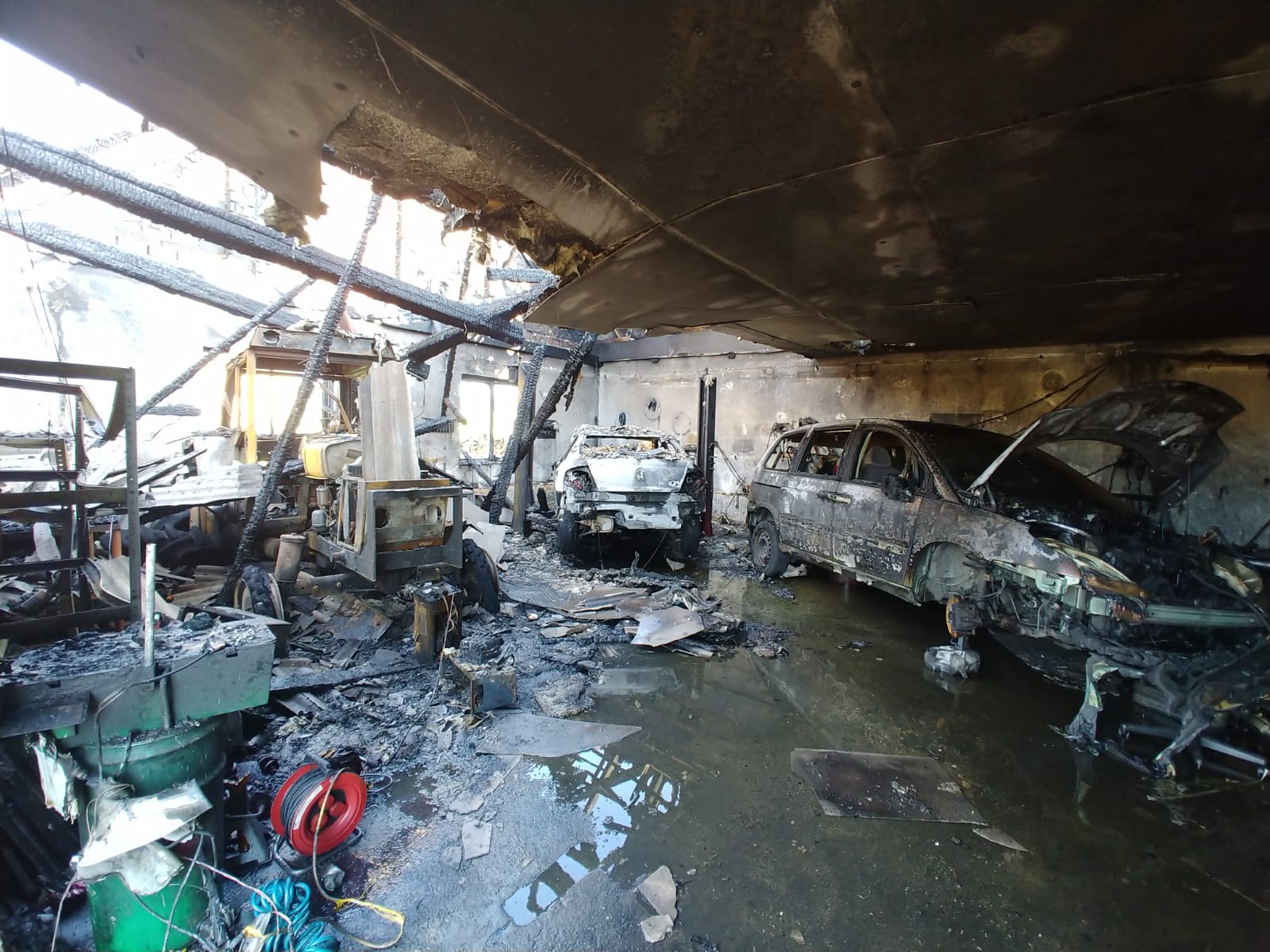 Objekt byl již celý v plamenech, uvnitř se nacházela dvě osobní vozidla a traktor. Před budovou dílny stála další dvě osobní vozidla. Jedno hasiči odtlačili z dosahu sálavého tepla, druhé již bylo požárem zničeno.