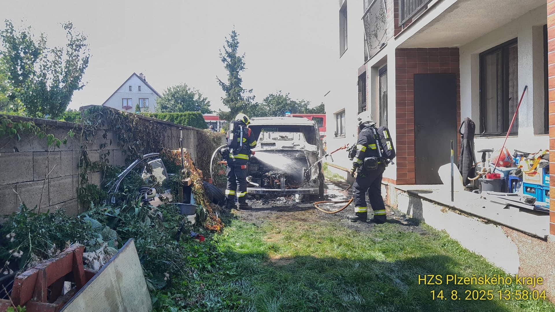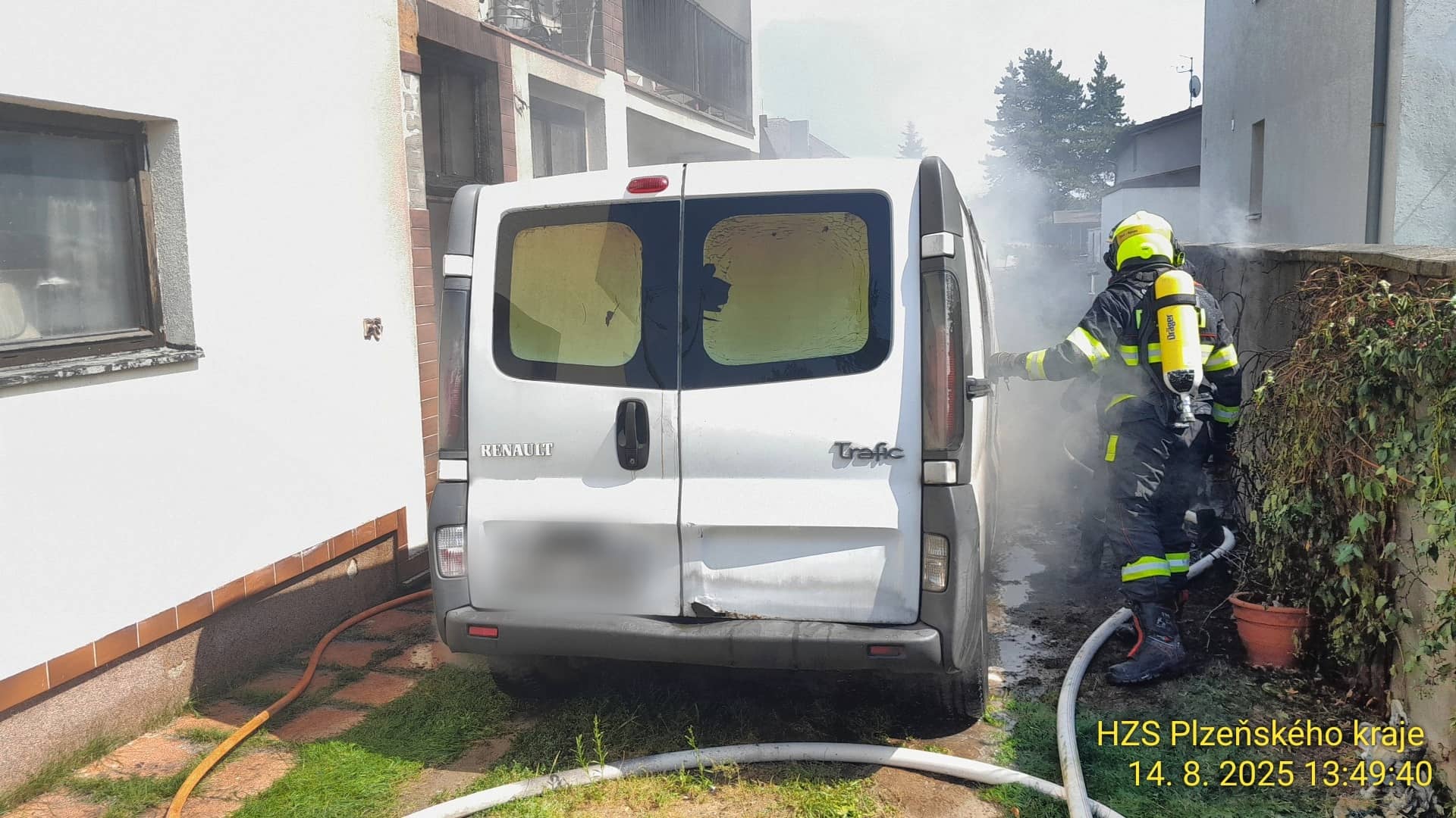 Ve čtvrtek 14. srpna 2025 krátce po půl druhé odpoledne vzplanula dodávka zaparkovaná na zahradě v obci Zruč-Senec. Oheň se rychle šířil a hrozil, že zasáhne nedaleký rodinný dům.