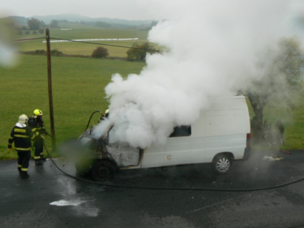 Požár dodávky u Kejnic