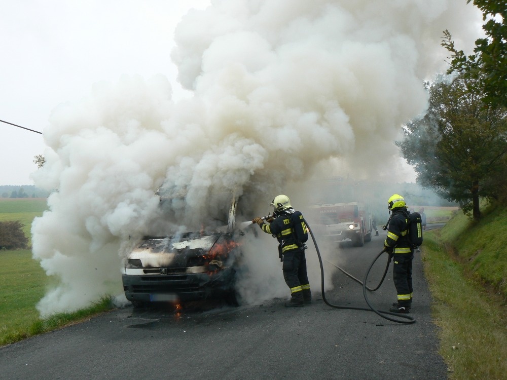 Požár se rozšířil z motorového prostoru. K jeho uhašení použili hasiči ze stanice Horažďovice vysokotlaký proud.