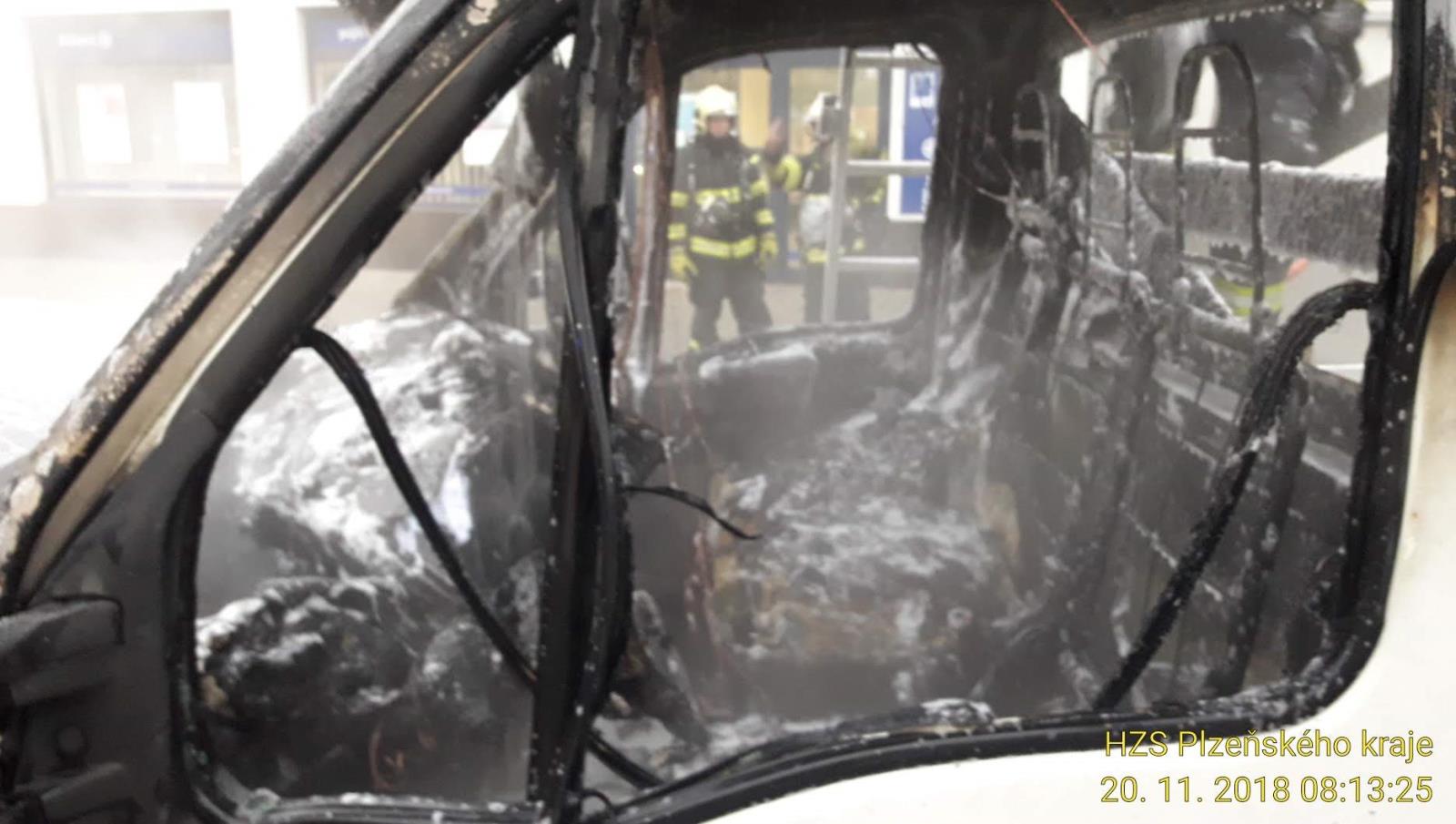 Požár dodávky v Lochotínské ulici v Plzni