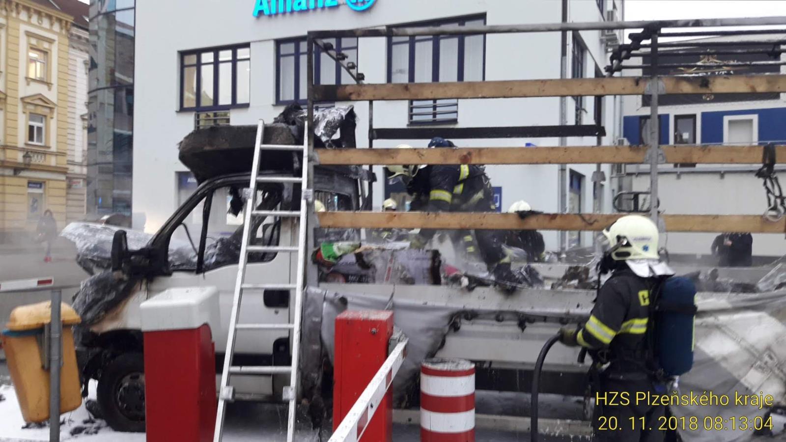 Požár již byl v plném rozsahu a zasáhl kabinu i nákladový prostor. Hasiči použili k hašení pěnu.