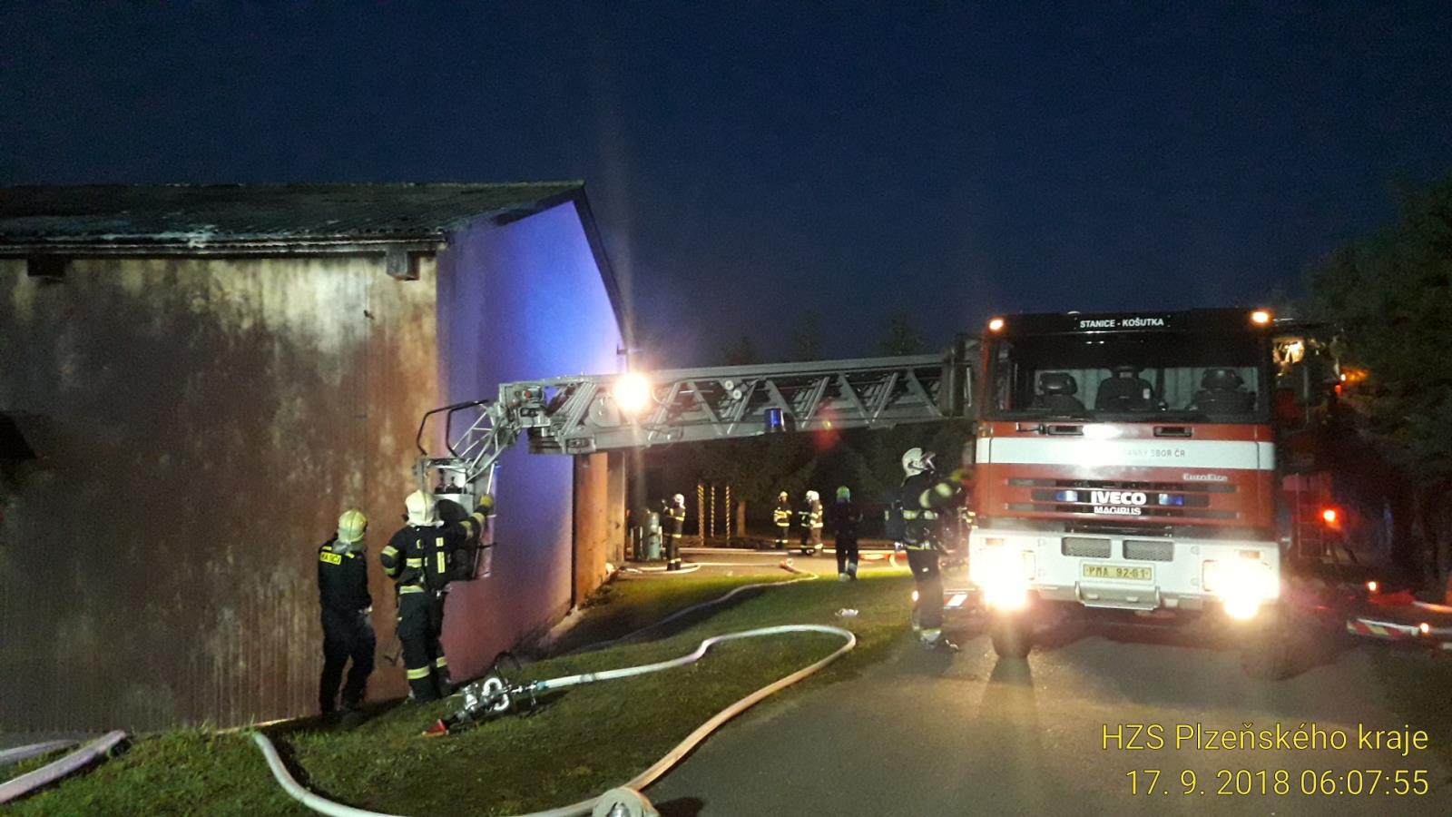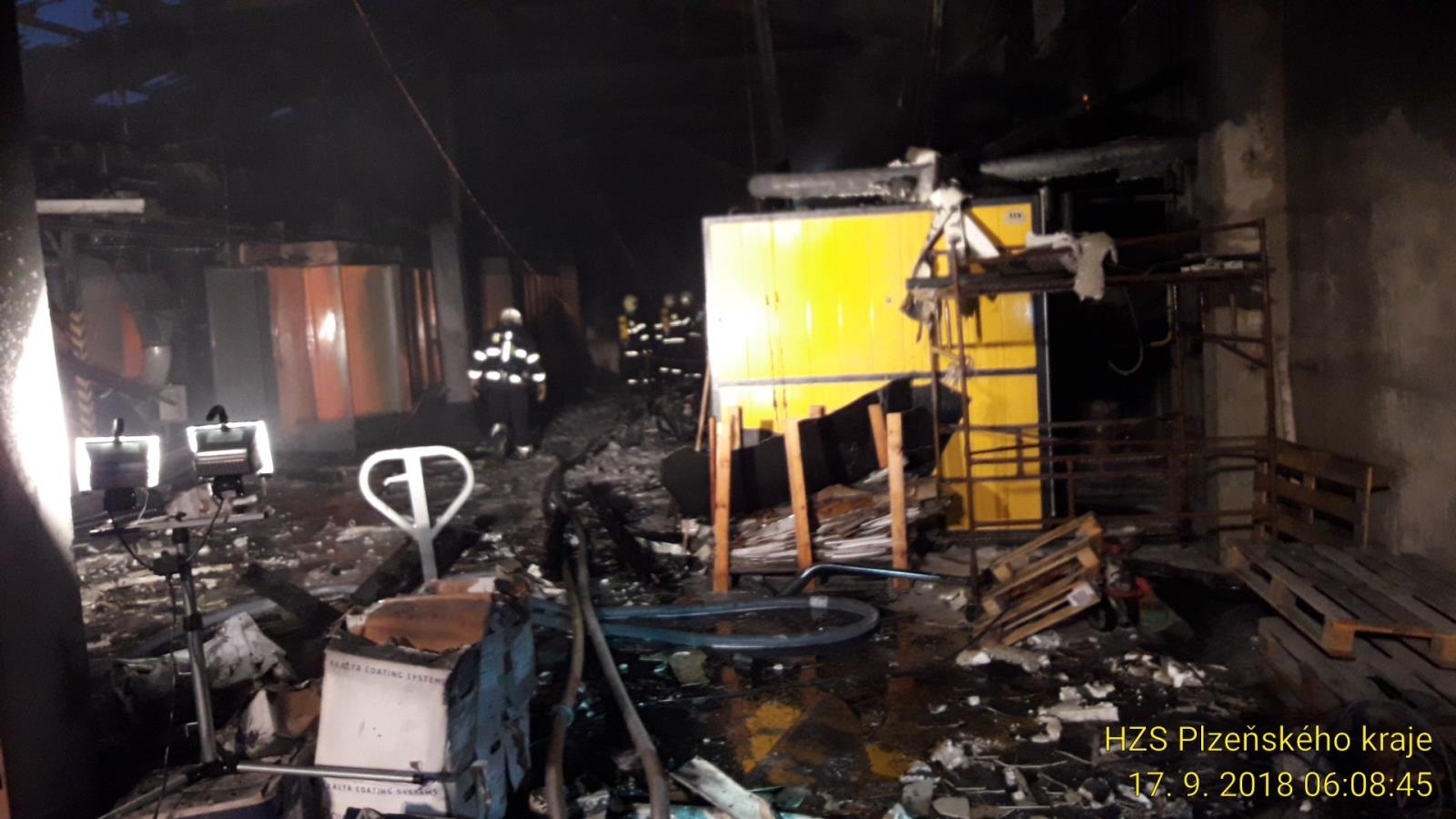 Kolem půl páté ráno. v pondělí 17. září 2018 došlo k požáru v hale soukromé firmy ve Štěnovickém Borku.