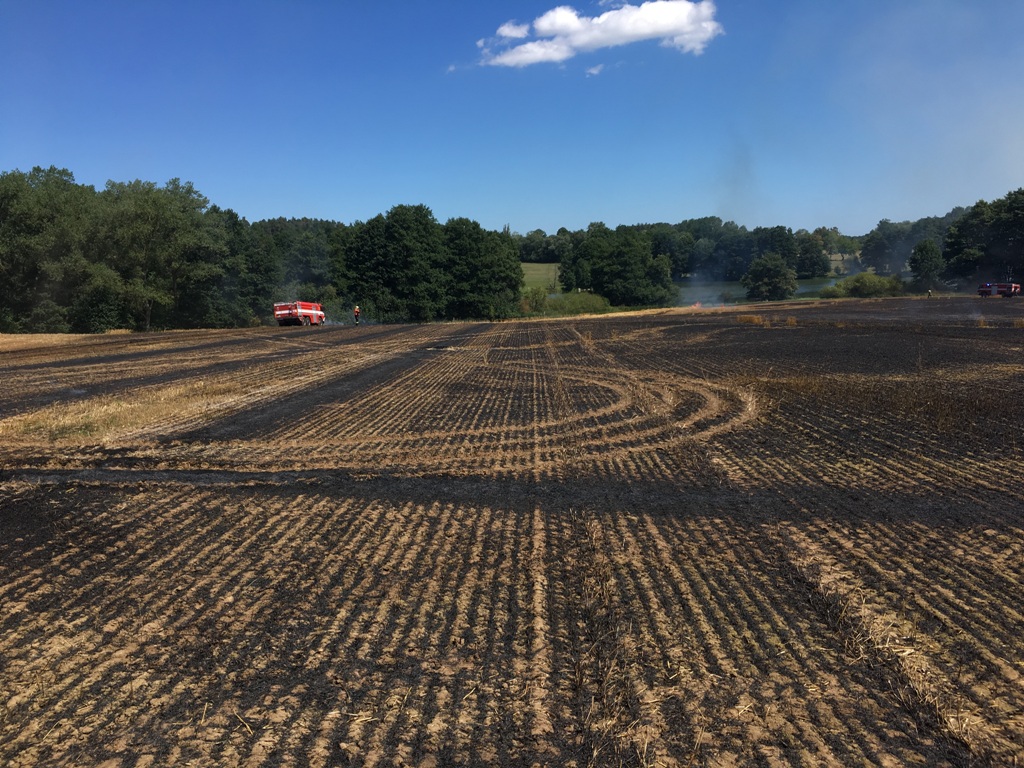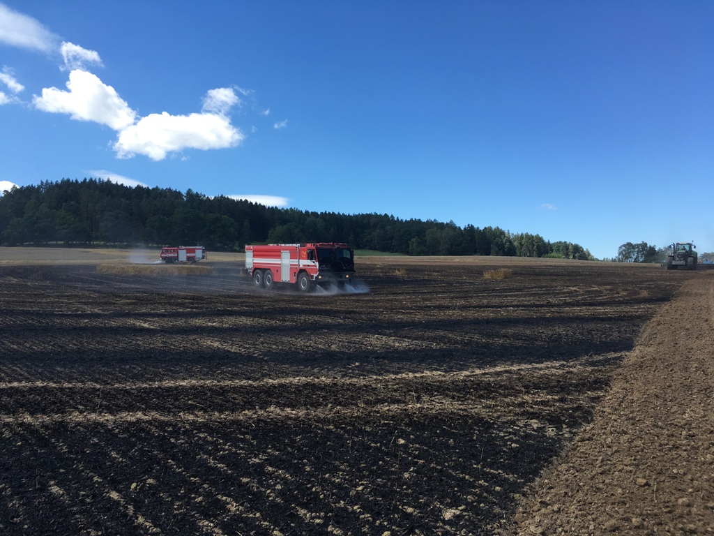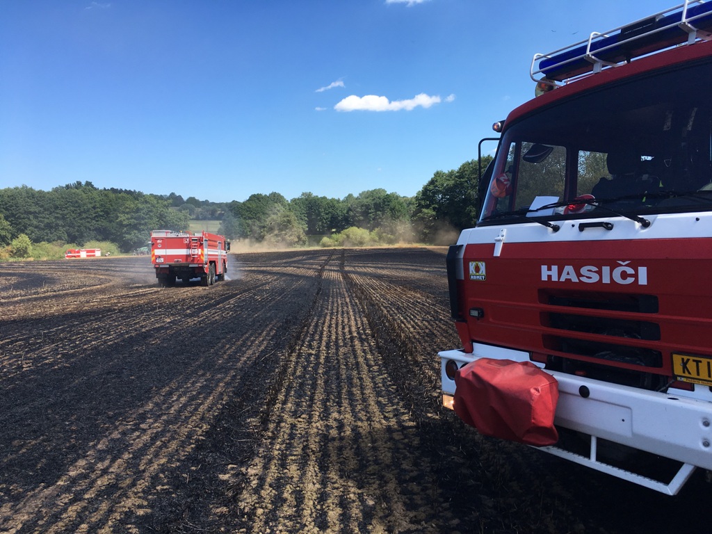 Požár zasáhl pole se slámou o ploše asi 300x300 metrů.