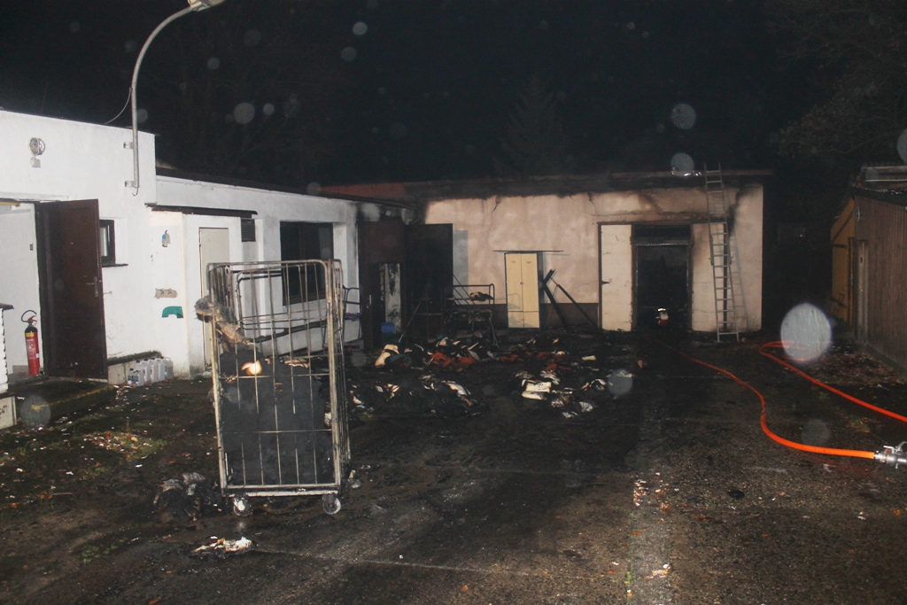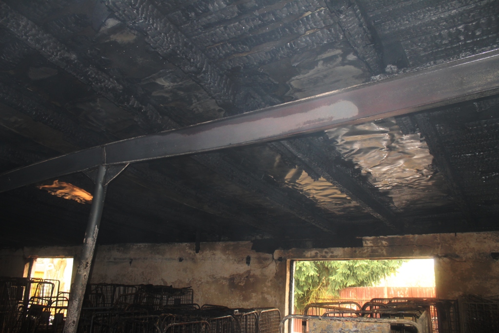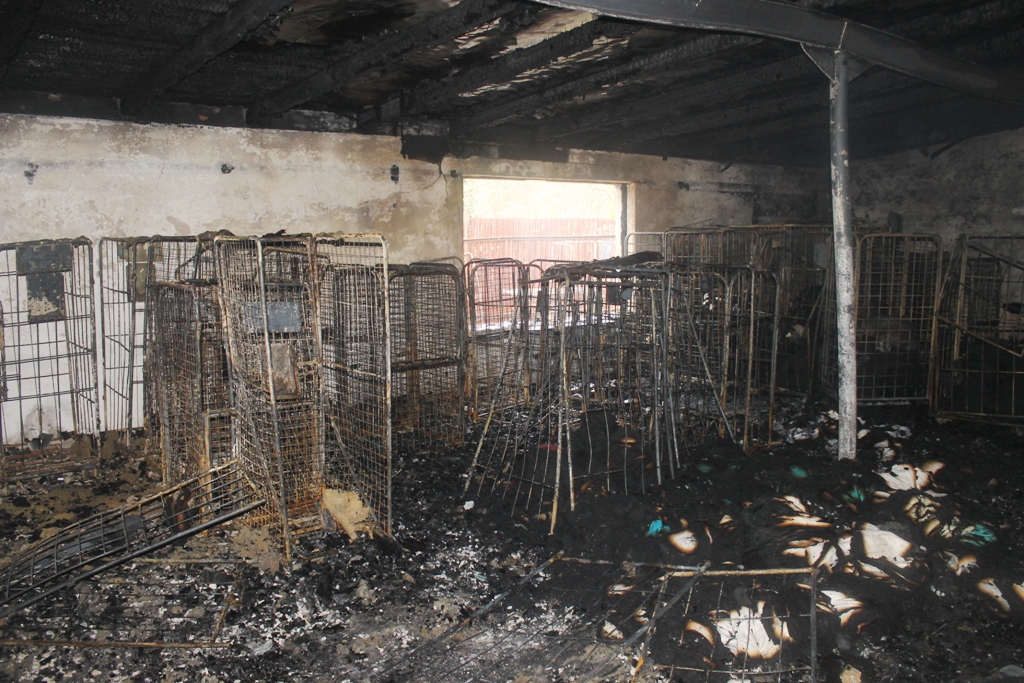 Požár zasáhl asi jednu třetinu objektu o rozměrech 30 x 70 metrů v části sloužící jako sklad čistého prádla. Na několika místech se objevila ohniska až ve střešním plášti. Hasiči na likvidaci požáru hasiči nasadili 5 útočných proudů s příměsí smáčedla a konstrukci střechy oddělili pomocí rozbrušovacích pil a vysokotlakého zařízení Cobra. Na odvětrání zakouřených prostor použili dva přetlakové ventilátory. Veškerý uskladněný materiál museli hasiči vynosit před budovu. Vodu k požáru hasiči dopravovali dálkově i kyvadlově z nedalekých čerpacích stanovišť.