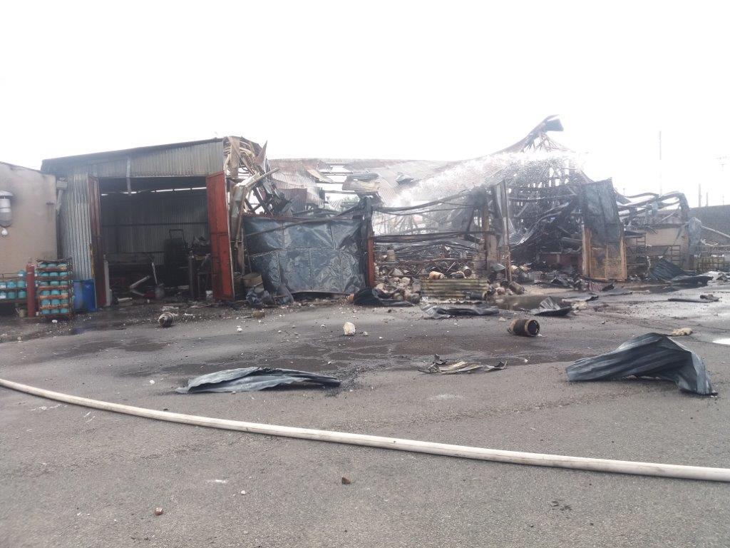 Požár byl vidět z velké dálky. Ještě několik desítek minut po příjezdu prvních jednotek vybuchovaly tlakové láhve a jejich fragmenty odlétávali do širokého okolí. Tlaková vlna poničila několik nedalekých budov, většinou se vysklila okna. Stav konstrukce skladu nedovolil, aby se hasiči k požáru přiblížili. Železnou konstrukci a tlakové láhve hasči ochlazovali z dálky. Pro zvýšení bezpečnosti hasebního zásahu používali monitory. Sklad byl zaplněný, dle dostupých informací se v něm mohlo nacházet 500 plných tlakových nádob.
