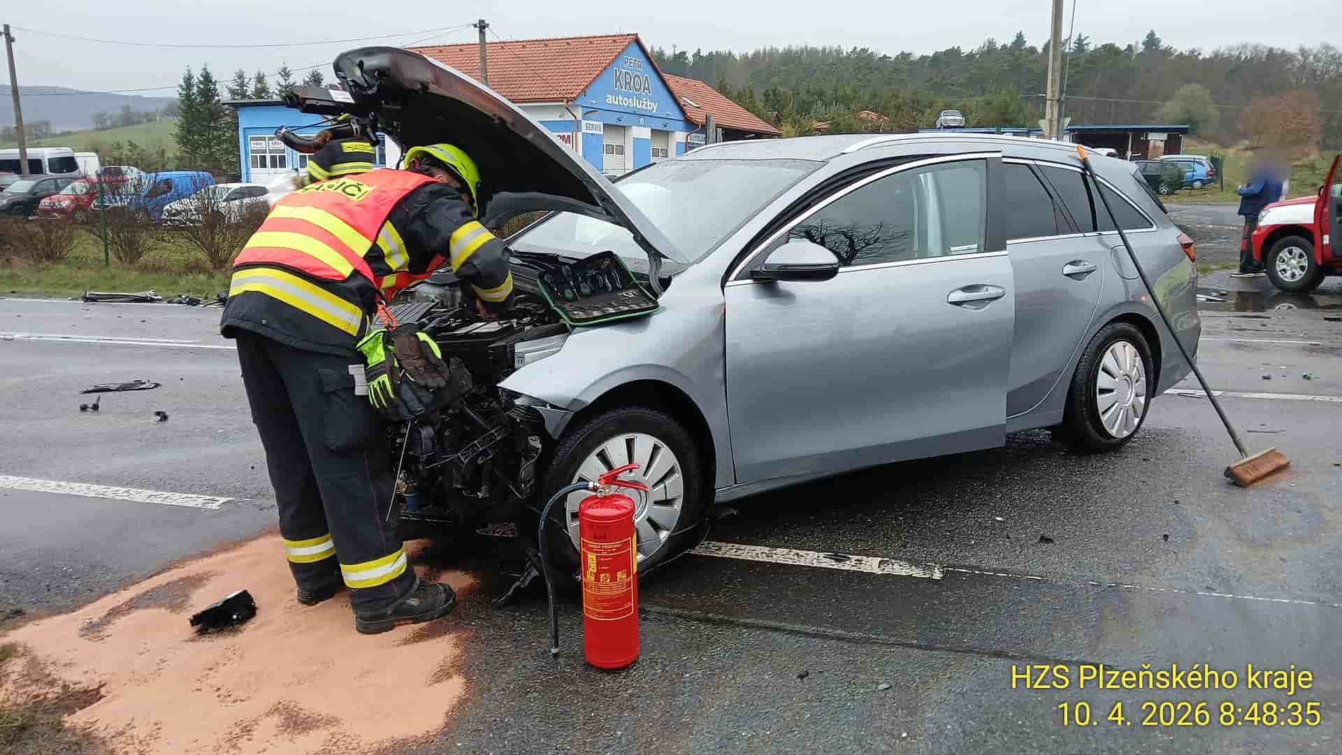 V pátek 10. dubna zasahovali hasiči a zdravotnická záchranná služba u několika nehod napříč krajem. Jednou z nich byl střet dvou osobních vozidel, při kterém utrpěli zranění oba řidiči. Záchranáři si je převzali do péče a zajistili jejich transport k dalšímu ošetření.