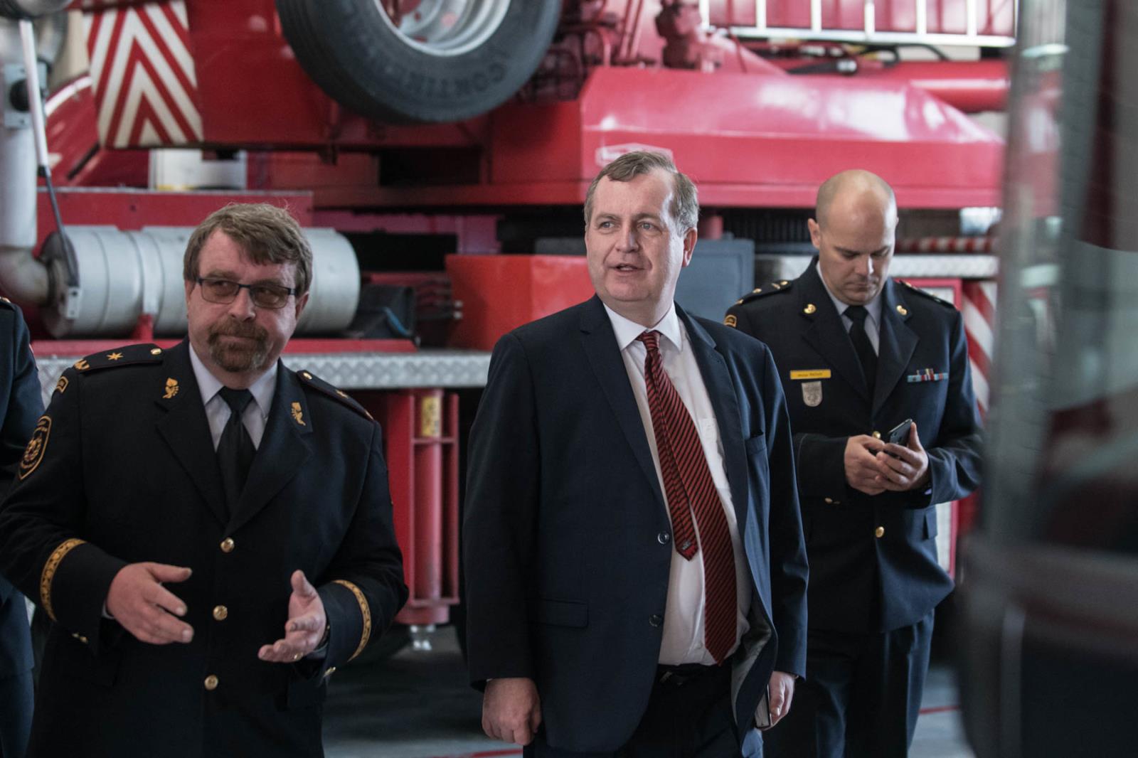 Jednou ze součástí jeho návštěvy byla i exkurze na hasičské stanici Plzeň Košutka, kde ho přivítali ředitel HZS Plzeňského kraje brig.gen. Ing. František Pavlas, ředitel územního odboru Plzeň plk. Ing. Pavel Musil a velitel stanice Košutka mjr. Ing. Michal Pathy.