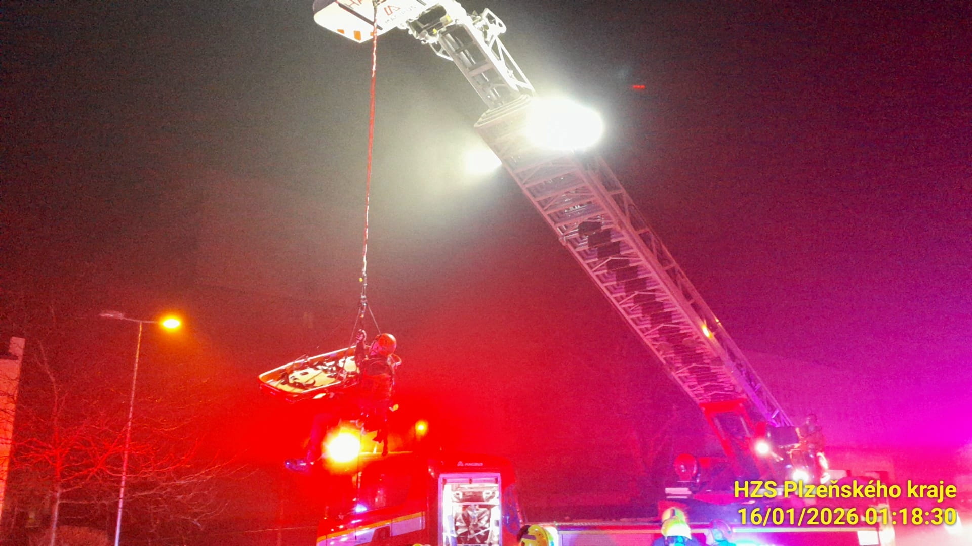 V noci z 15. na 16. ledna zasahovali hasiči v Třemošné u panelového domu, kde se na střeše kotelny ocitla ohrožená osoba. Díky rychlému a profesionálnímu zásahu byla bezpečně snesena a předána zdravotníkům. Událost upozorňuje na význam připravenosti a bezpečného zásahu v krizových situacích.