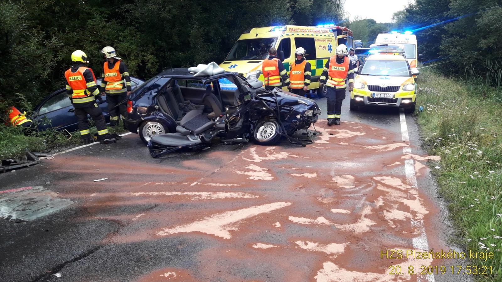 Na Klatovsku v Běšinech došlo k dopravní nehodě dvou osobních automobilů jen o pár desítek minut později. I zde byl jeden zraněný, kterého si převzala ZZS. Tato nehoda se obešla bez vyprošťování. Hasiči zajistili místo události a následně zlikvidovali drobný únik oleje
