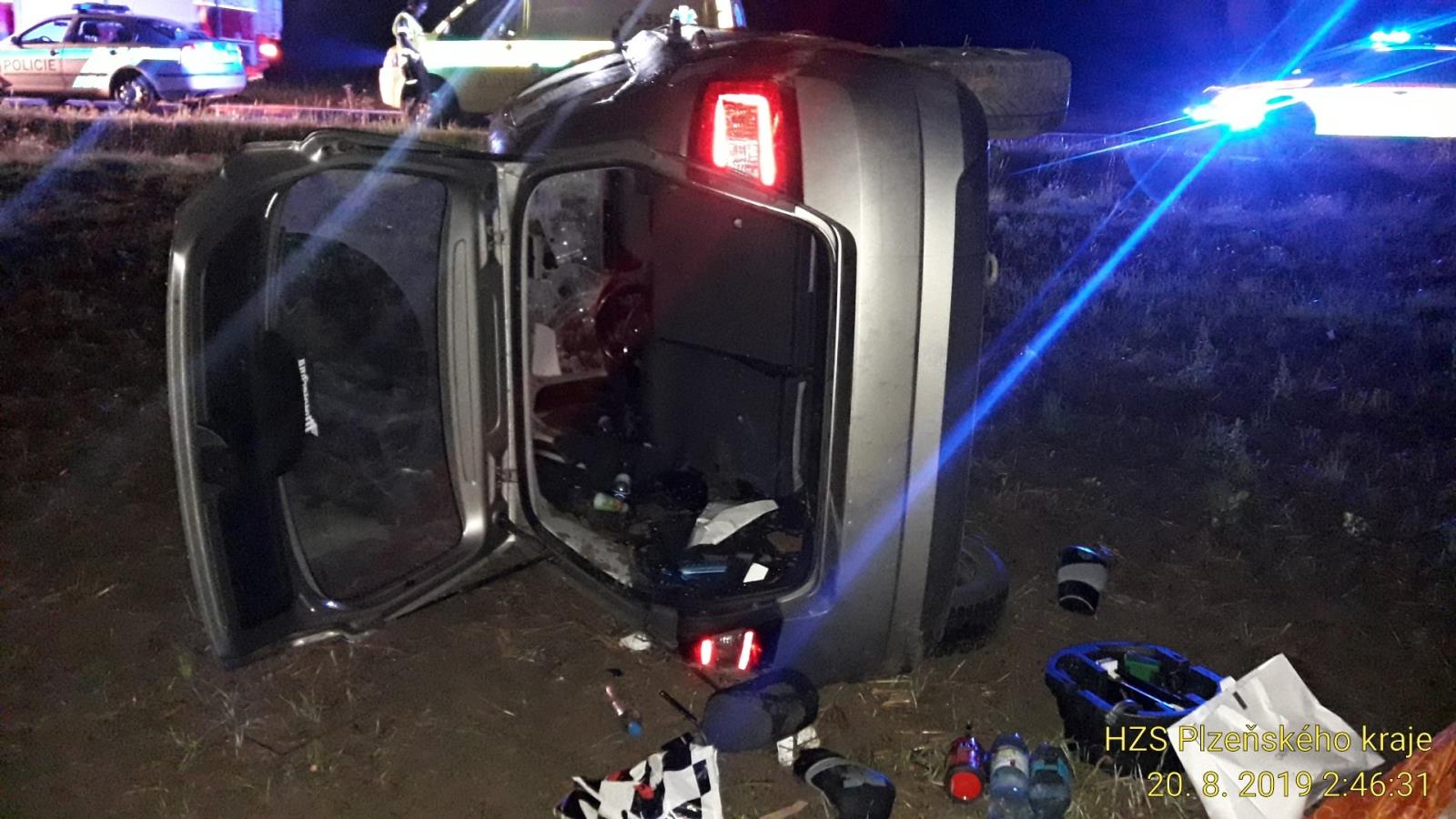 K poslední dopravní nehodě došlo před jedenáctou hodinou v noci nedaleko Kaznějova ve směru na Oboru. Jedno osobní vozidlo skončilo mimo komunikaci. Zraněného řidiče si převzala do péče ZZS.