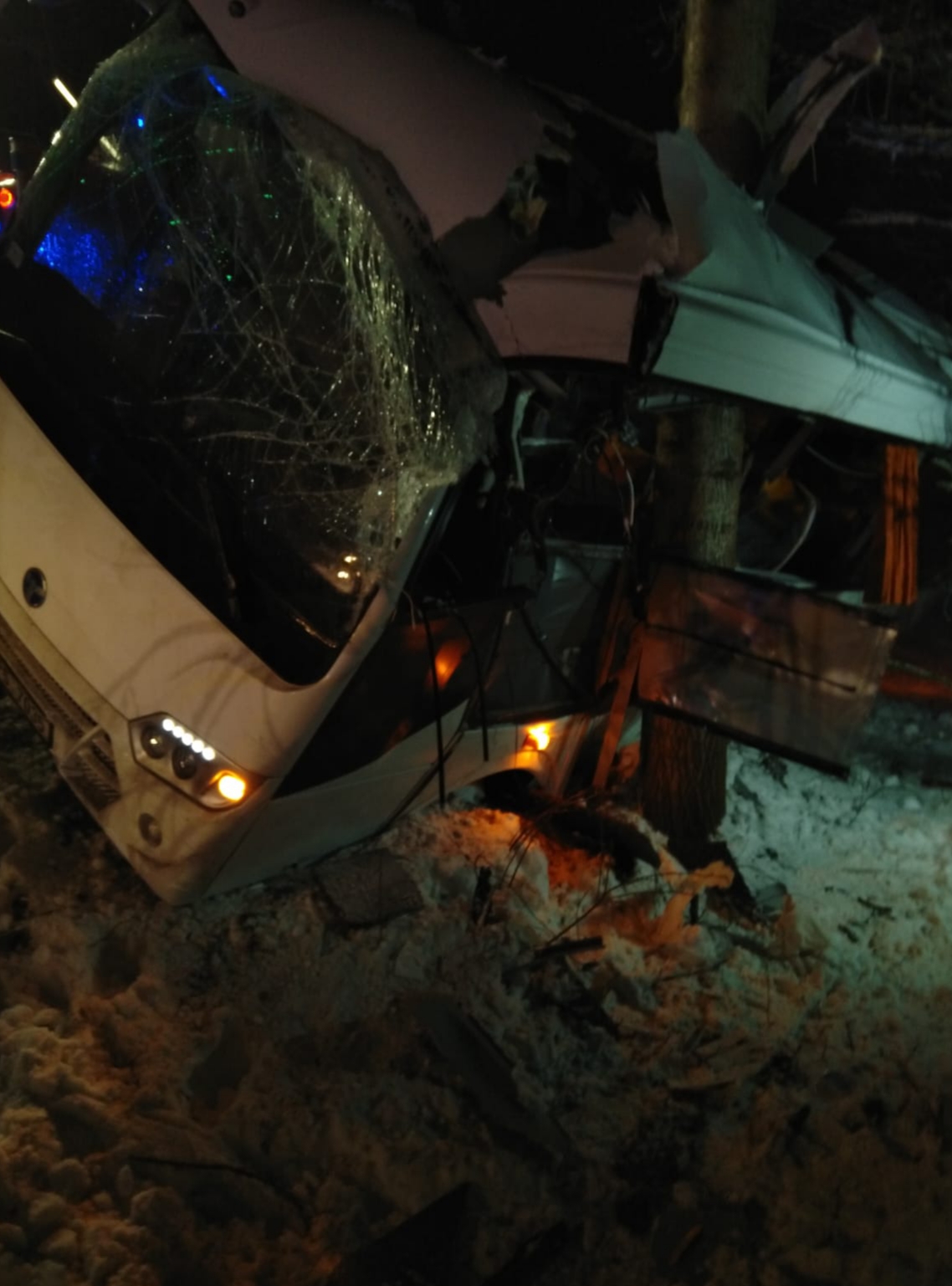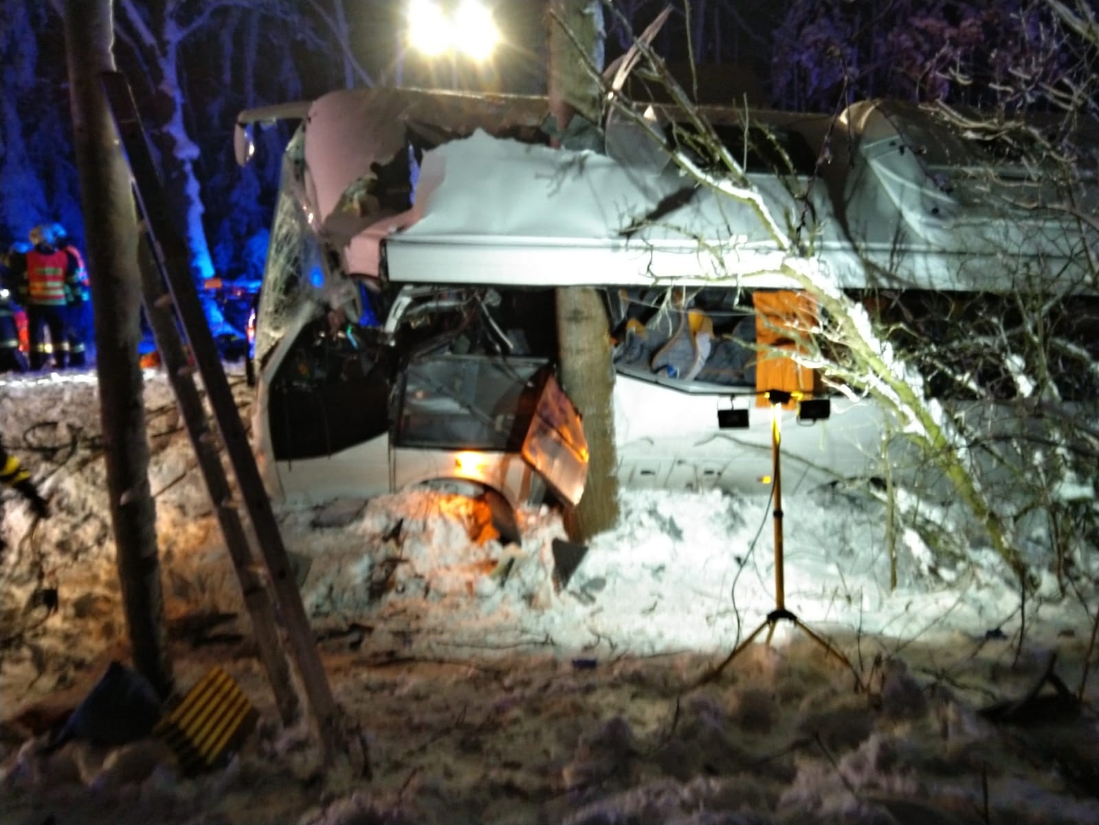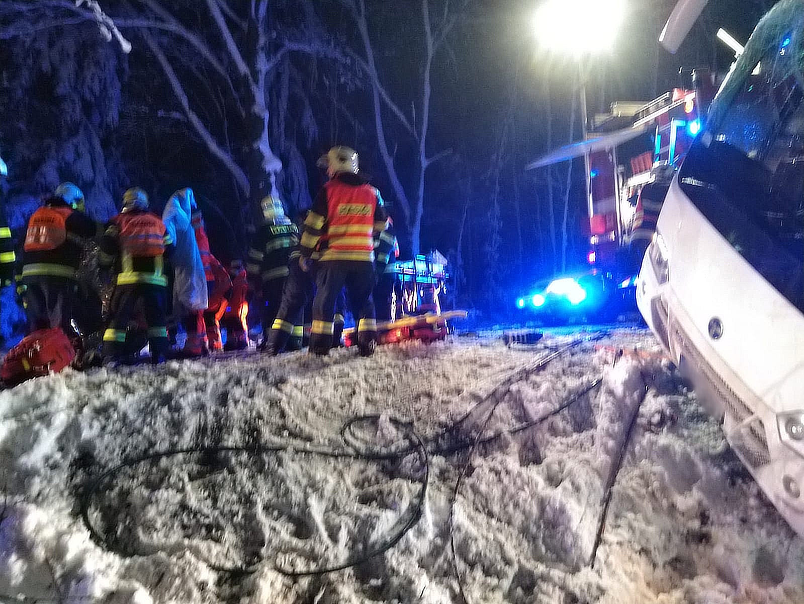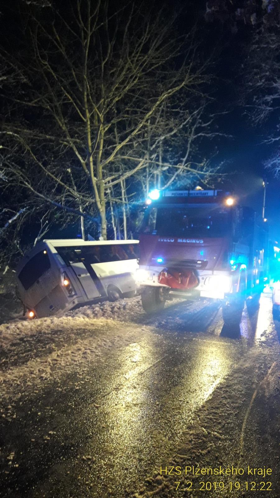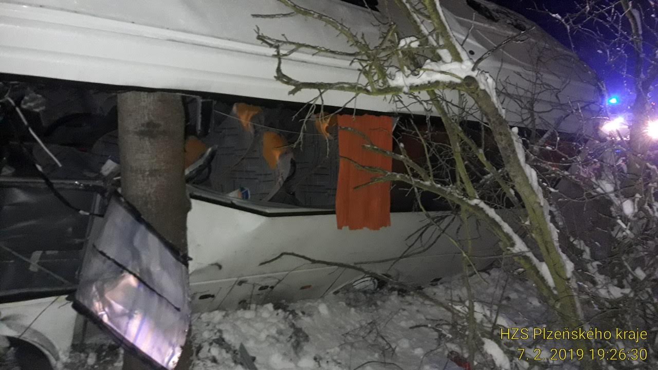 Autobus vyjel ze zatáčky a skončil v porostu vedle vozovky zaklíněn mezi stromy. Na místo události vyrazilo šest hasičských jednotek. Cestu k zásahu značně komplikovalo namrzající mrholení. Hasiči zjistili , že v autobusu cestovalo 17 osob různých národností, které pravidelně vozil do nedaleké průmyslové zóny, kde pracují.
