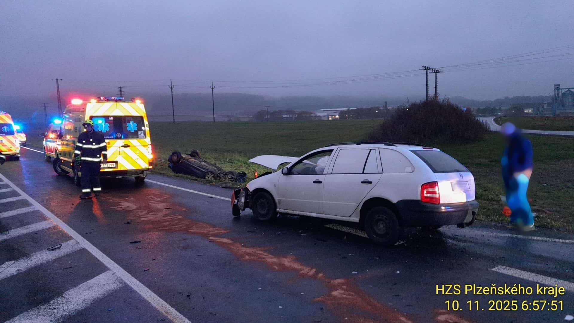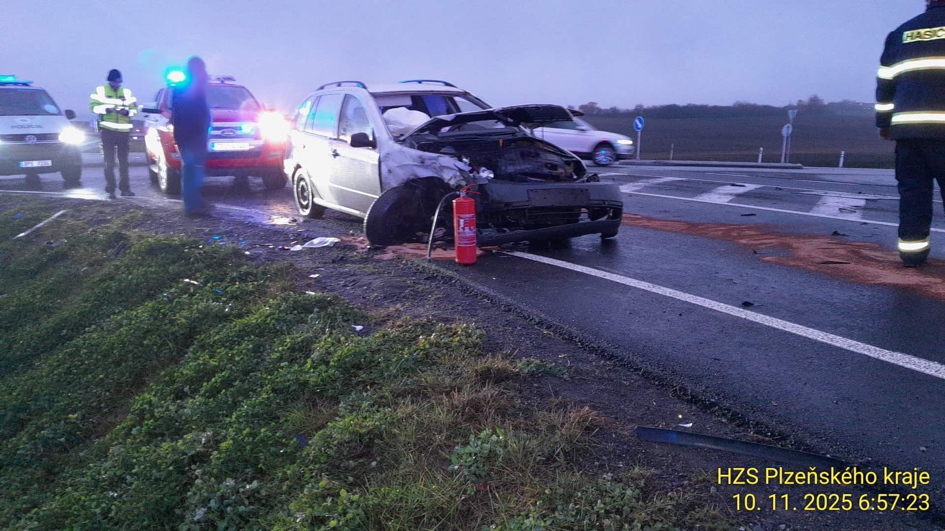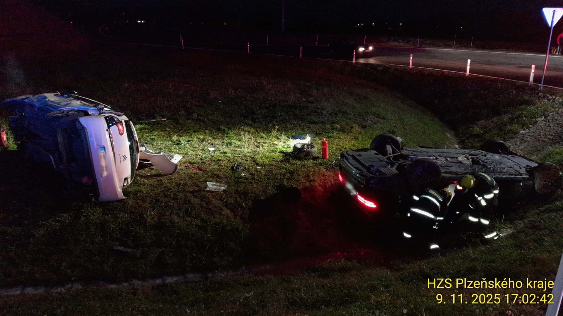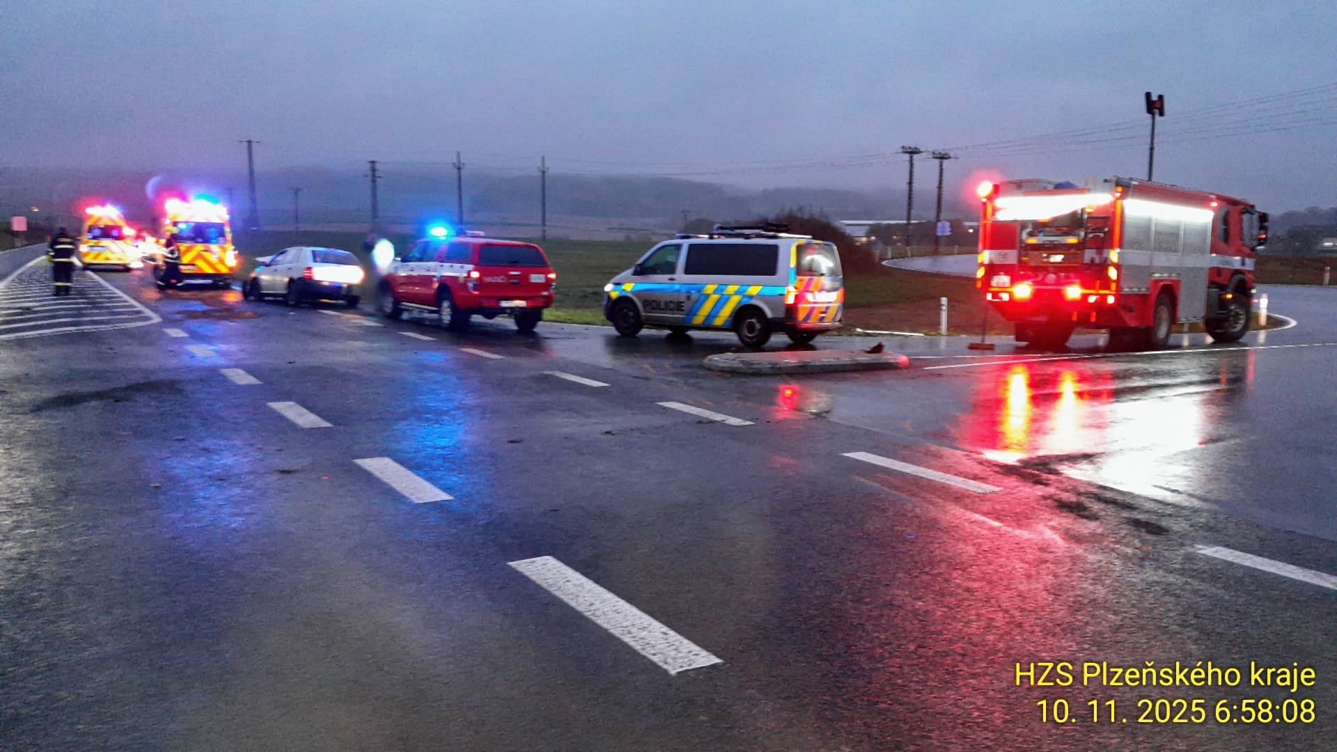 K první události došlo 9. listopadu 2025 v 16:32. Dvě osobní auta skončila po střetu mimo vozovku a hasiči museli ze zdemolovaných vozů vyprostit dvě osoby pomocí hydraulického vybavení. Celkem tři zranění byli předáni záchranné službě k ošetření a transportu do nemocnice. Policejní hlídky řídily dopravu a silnice zůstala částečně omezená.