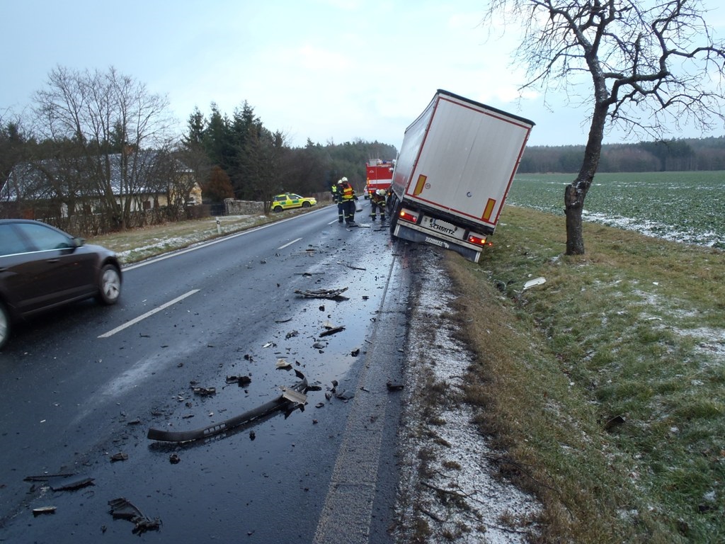 V pondělí 4. prosince 2017 v 8:46 hodin obdrželo operační středisko informaci o dopravní nehodě osobního auta a kamionu, která se stala na hlavní silnici nad Plasy směrem na Kralovice nedaleko odbočky na Žebnici a Babinu v místě zvaném Sokolka.