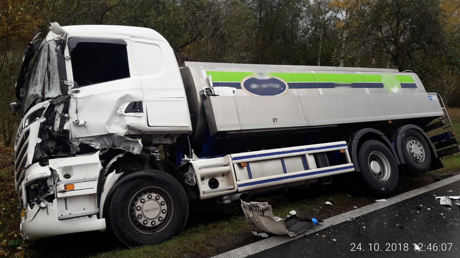 Ve středu 24.10.2018 před půl jednou dopoledne došlo za Chotěšovem ve směru na Stod k dopravní nehodě 2 nákladních vozidel.