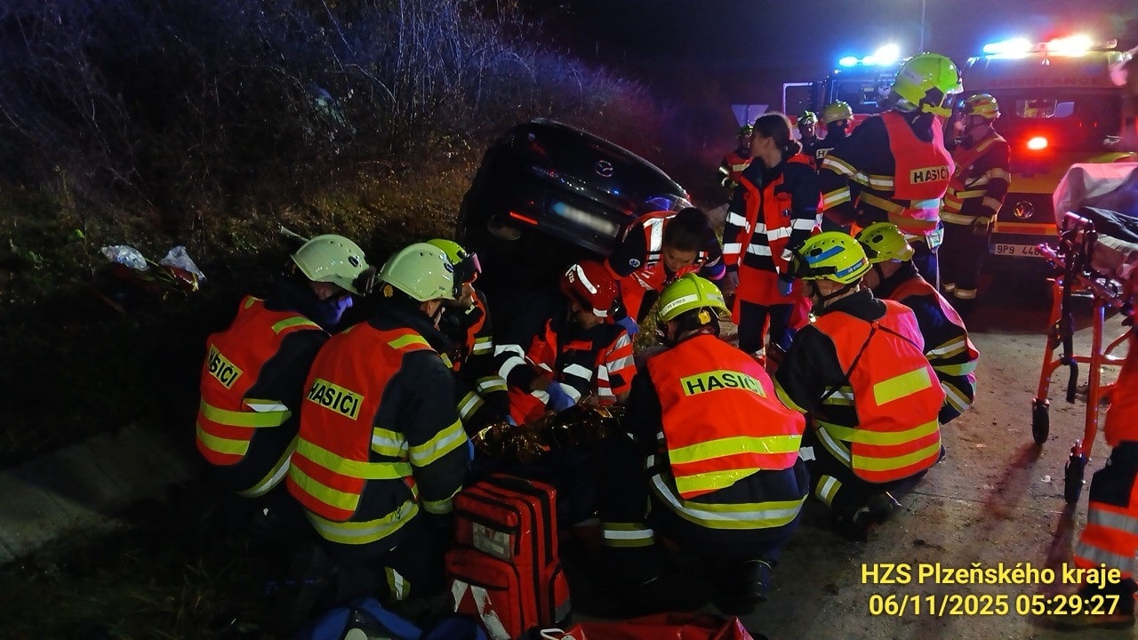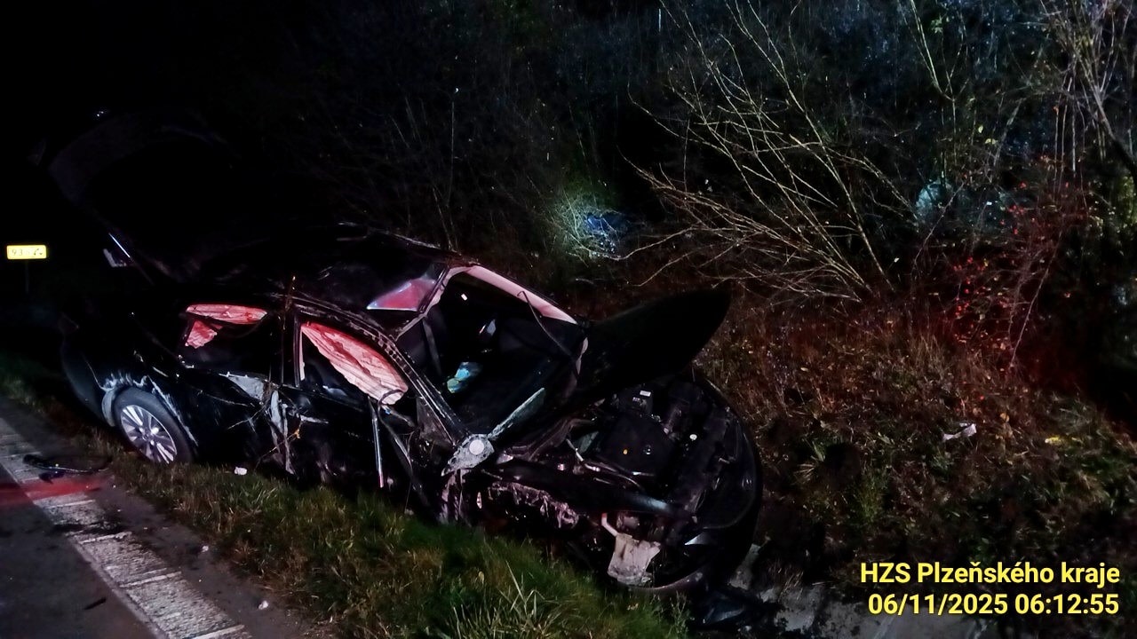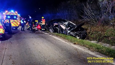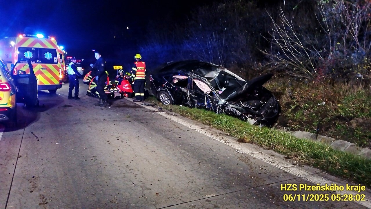 Dálnice D5 směrem na Rozvadov byla ve čtvrtek pozdě odpoledne svědkem těžké dopravní nehody osobního auta. Ve vozidle cestovalo pět lidí. Hasiči po příjezdu na místo museli zahájit resuscitaci jedné z osob, další byla na místě bez známek života. Ostatní cestující skončili v péči záchranářů.