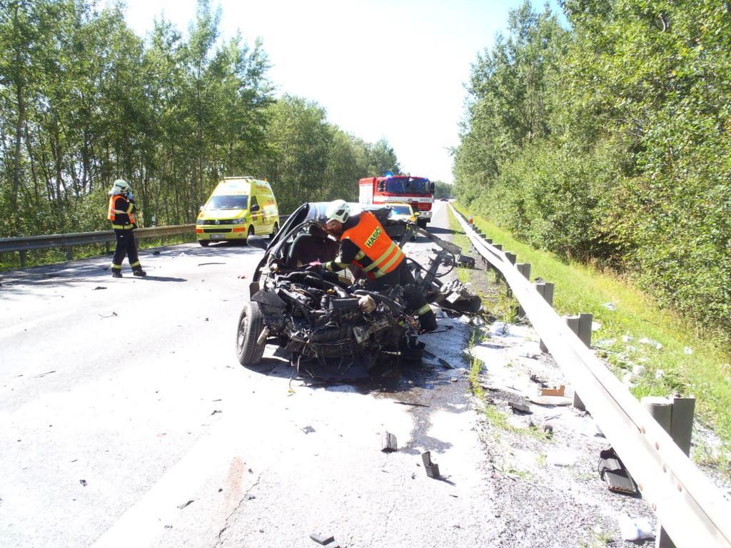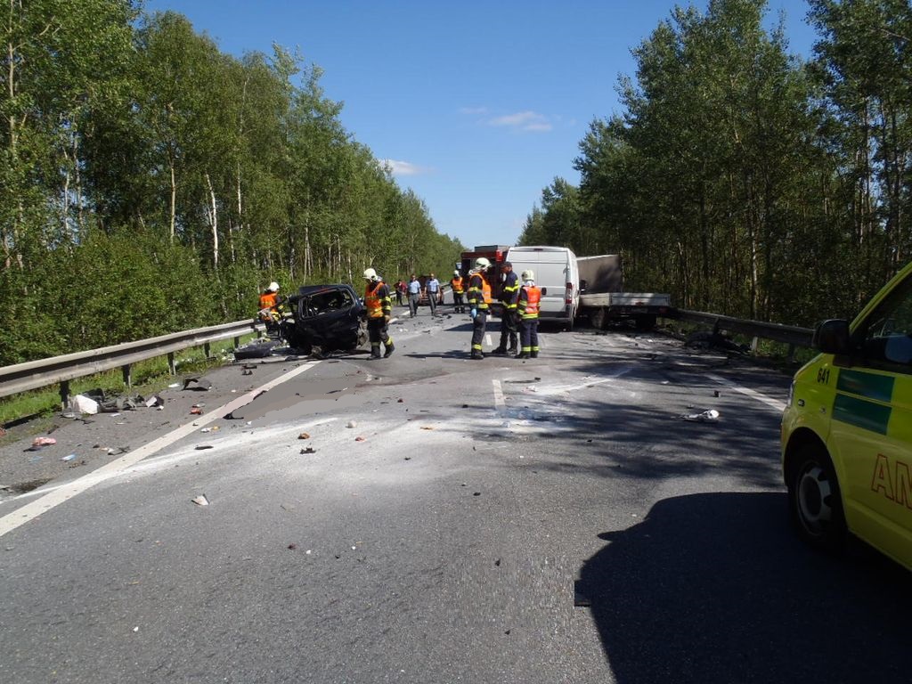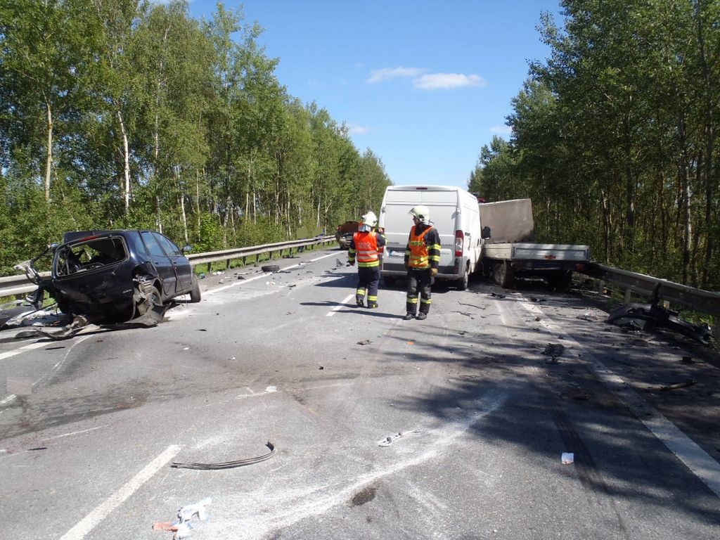 Řidička osobního auta utrpěla devastující poranění, která neměla šanci přežít. Řidiči obou dodávek vyvázli se středně těžkým a lehčím poraněním, hasiči pomáhali ZZS při jejich ošetření a transportu do sanitek. Posádce druhého osobního auta se nic nestalo.
