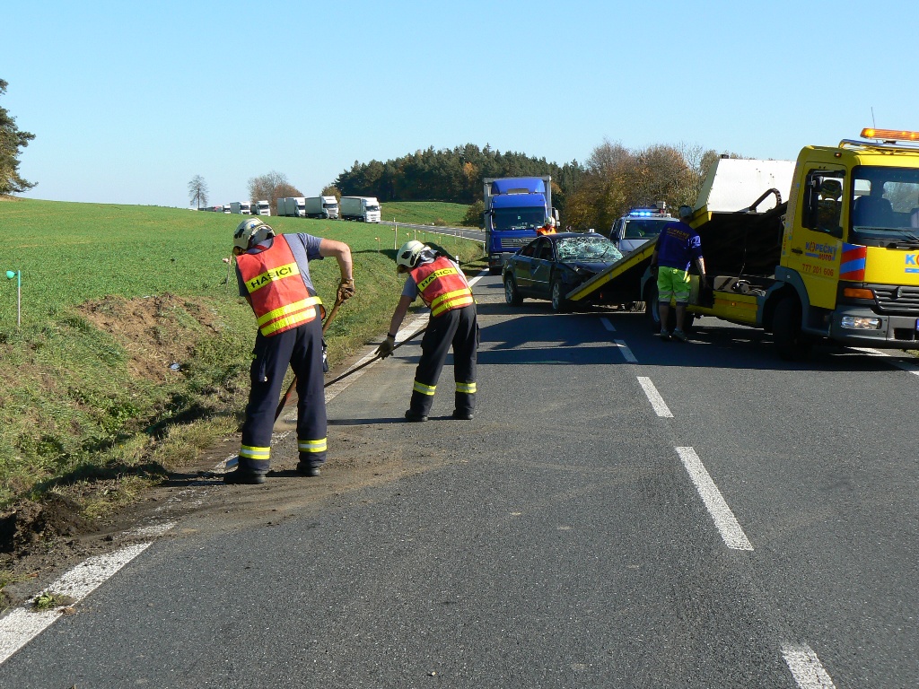 Po zaměření nehody Policií ČR hasiči pomohli naložit nepojízdné auto na odtahovou službu a provedli úklid vozovky.
