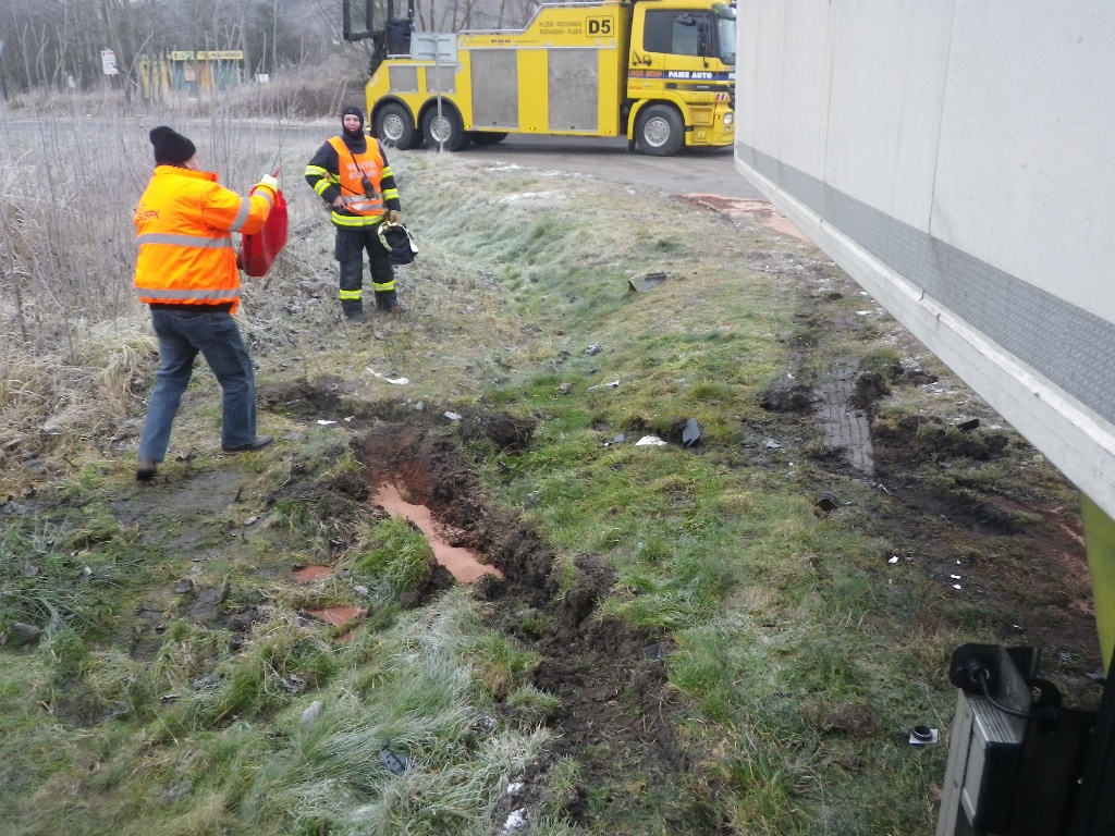 Nákladní vozidlo nepřeváželo žádný náklad. Z jeho poškozené nádrže uniklo asi na silnici a do příkopu asi 150 litrů nafty. Hasiči na likvidaci uniklých kapalin spotřebovali přes 200 kg sorpčního materiálu. Na základě informací od zástupců Životního prostředí nebyly nehodou nijak ohroženy vodní zdroje. Odbagrování kontaminované zeminy zajistí správci komunikace.