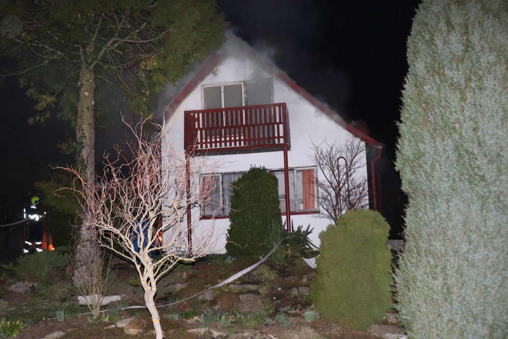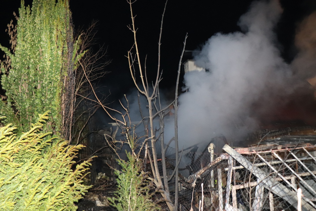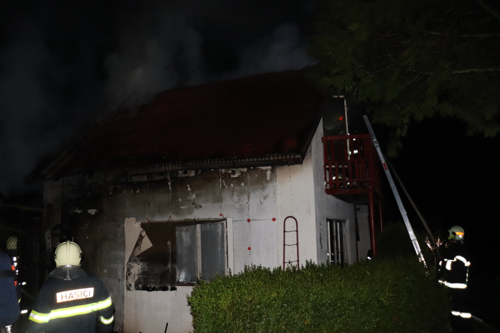 Objekt byl v plném rozsahu požáru, hořel i přilehlý přístřešek. V průběhu zásahu došlo k výbuchu dvou 10kg propanbutanových lahví. Tyto a další dvě nevybuchlé tlakové lahve vynesli hasiči z objektu.