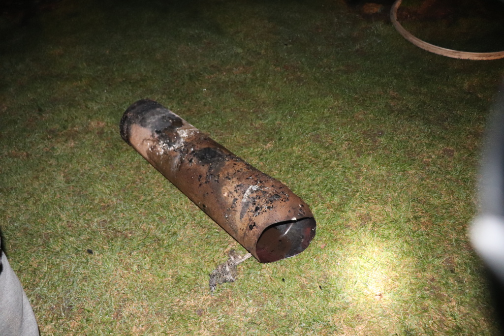 Dále vynesli jednu vybuchlou 20kg propan butanovou lahev, která svým výbuchem poškodila štítovou zeď.