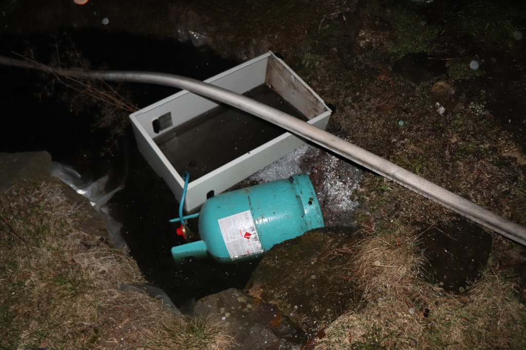 Dále vynesli jednu vybuchlou 20kg propan butanovou lahev, která svým výbuchem poškodila štítovou zeď. Při události nedošlo ke zranění. Předběžná škoda byla vyčíslena na 150tis. Kč. Příčina požáru je v šetření.