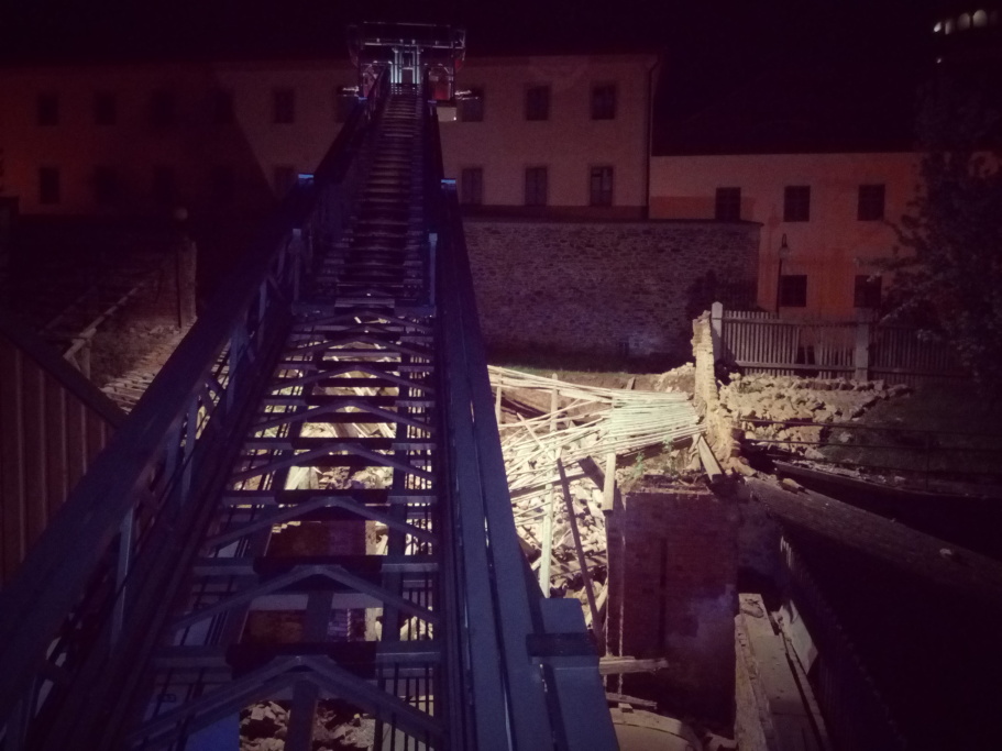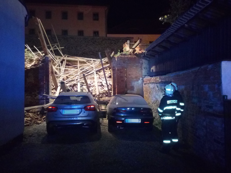 Hasiči PS Domažlice a PS Košutka vyjeli v noci 25.4. 2018 k prozkoumání sesutého objektu.